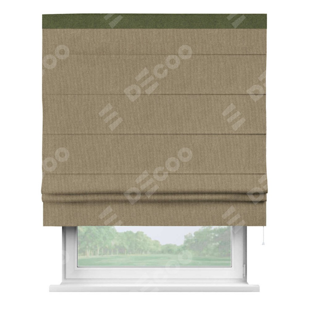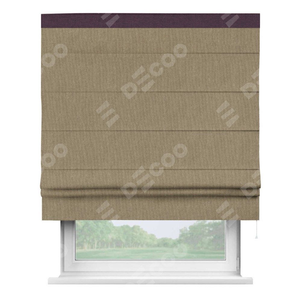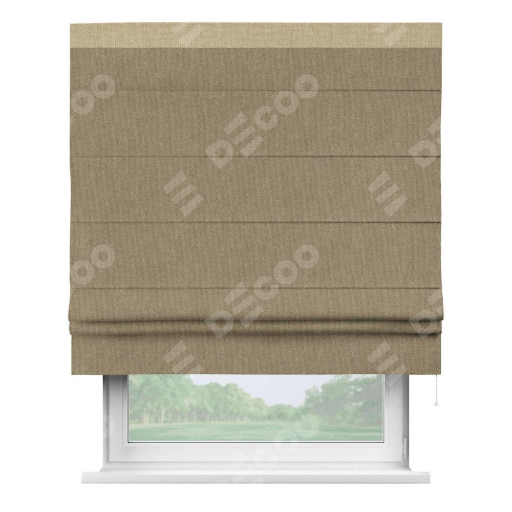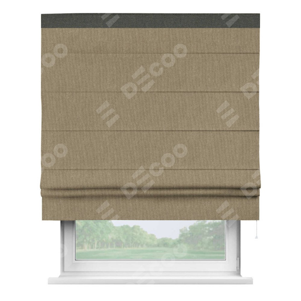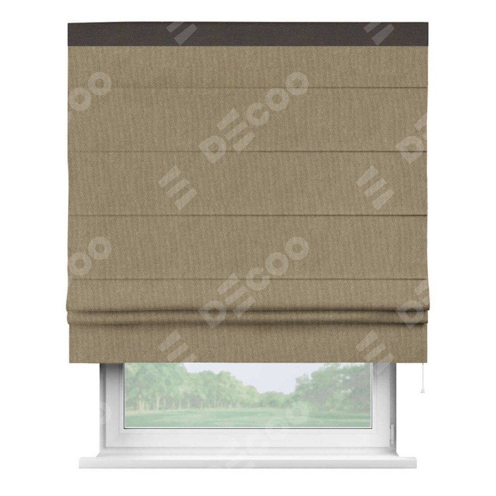 Римская штора «Кортин» для проема, лён димаут тёмно-бежевый с кантом Кинг