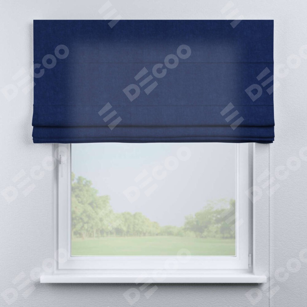 Классическая римская штора производителя «Cortin», пошита из ткани канвас синий электрик, артикул: v-355. Имеет универсальный механизм и подходит для монтажа: на потолок, на стену и в нишу.