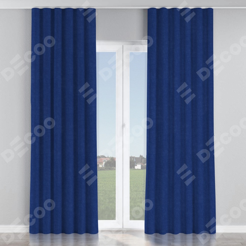 Комплект прямых штор, от производителя «Cortin», пошиты из ткани канвас синий электрик, артикул ткани v-355. С изнаночной стороны в верхней части штор пристрачивается шторная лента с декоративными складками «Волна». Для создания элегантных складок прямые шторы шьются по стандарту с коэффициентом 1:2 (на 100 см. ширины проёма 200 см. ширины ткани).
