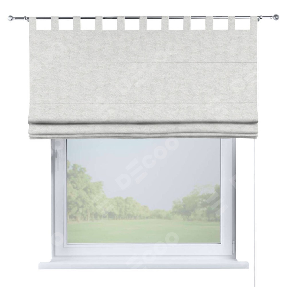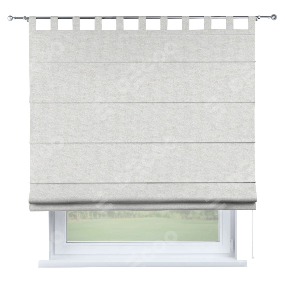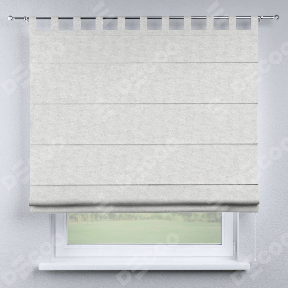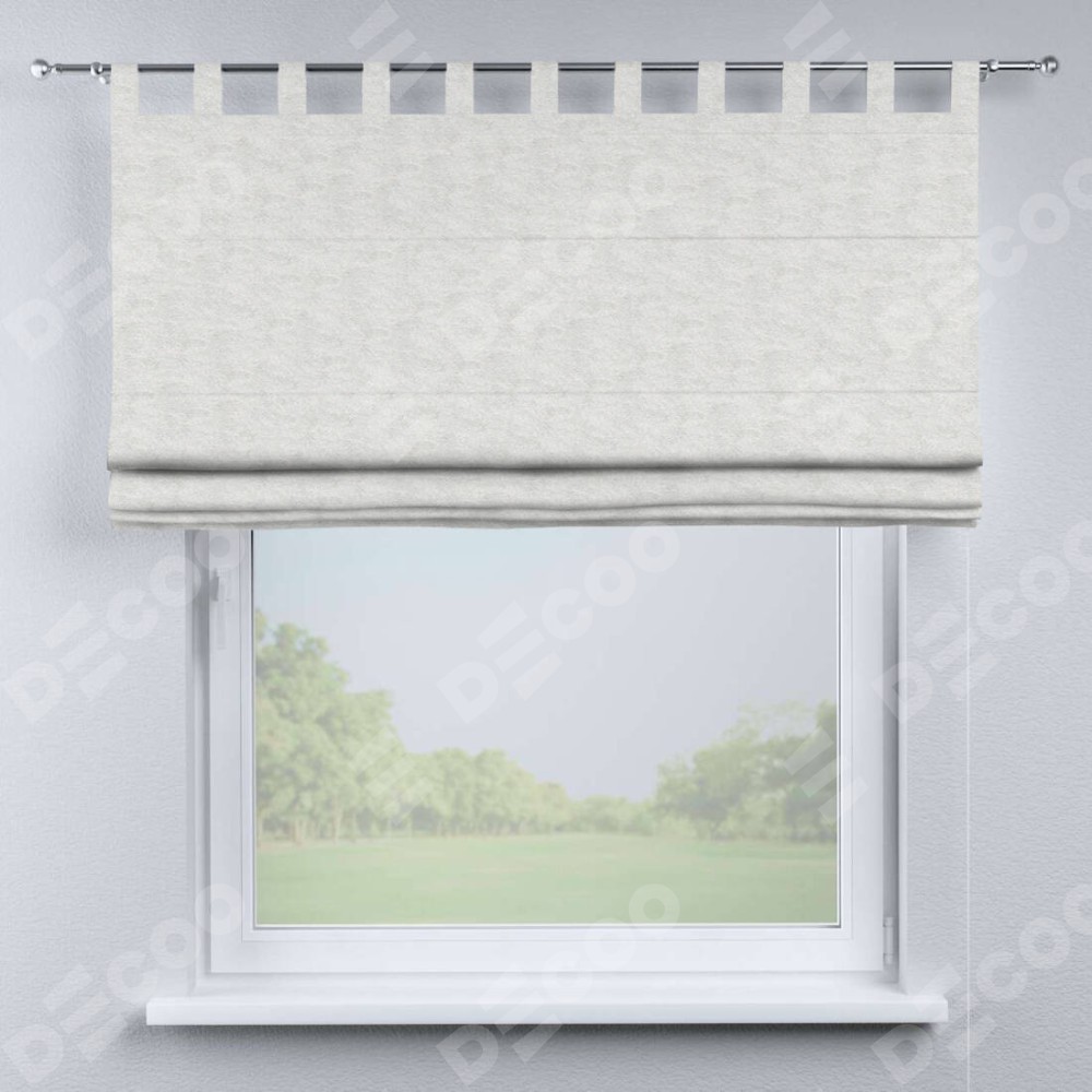 Римская штора производителя «Cortin», используется для проёма, пошита из ткани софт мрамор белый, артикул ткани 93581. Данная модель пошита на петлях, комплектуется на выбор круглым карнизом и подходит для монтажа на стену. Римская штора на петлях имеет простую систему регулировки высоты, отличительным преимуществом данной модели является простой способ монтажа. Достаточно повесить ее на трубу и штора готова!