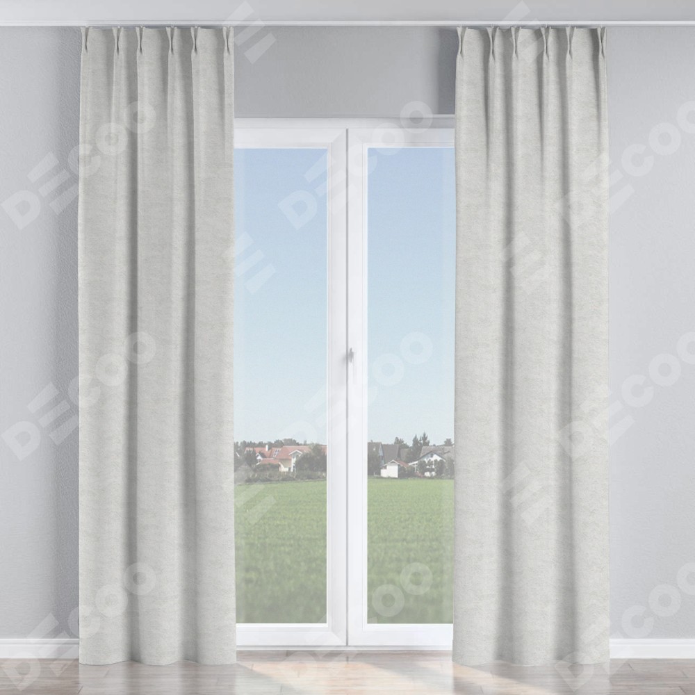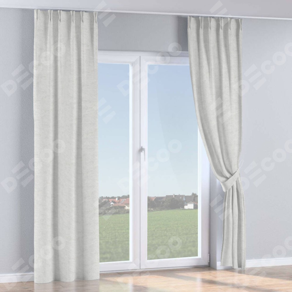 Комплект прямых штор, от производителя «Cortin», пошиты из ткани софт мрамор белый, артикул ткани 93581. С изнаночной стороны в верхней части штор пристрачивается шторная лента с декоративными складками «Кустик». Для создания элегантных складок прямые шторы шьются по стандарту с коэффициентом 1:2 (на 100 см. ширины проёма 200 см. ширины ткани).