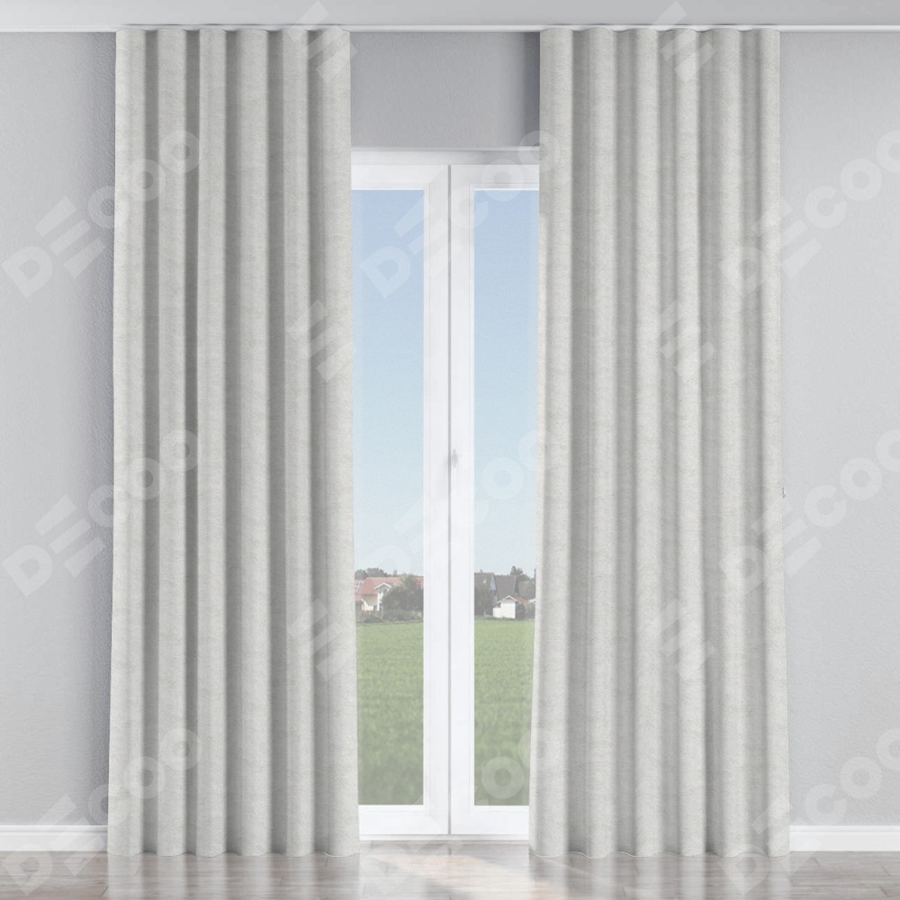 Комплект прямых штор, от производителя «Cortin», пошиты из ткани софт мрамор белый, артикул ткани 93581. С изнаночной стороны в верхней части штор пристрачивается шторная лента с декоративными складками «Волна». Для создания элегантных складок прямые шторы шьются по стандарту с коэффициентом 1:2 (на 100 см. ширины проёма 200 см. ширины ткани).