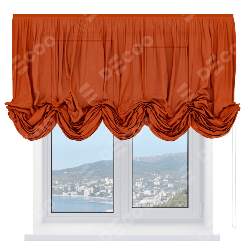 Австрийская штора производителя «Cortin», используется для проёма, пошита из ткани лён терракотовый, артикул ткани 53440. Имеет универсальный механизм и подходит для монтажа: на потолок и на стену.