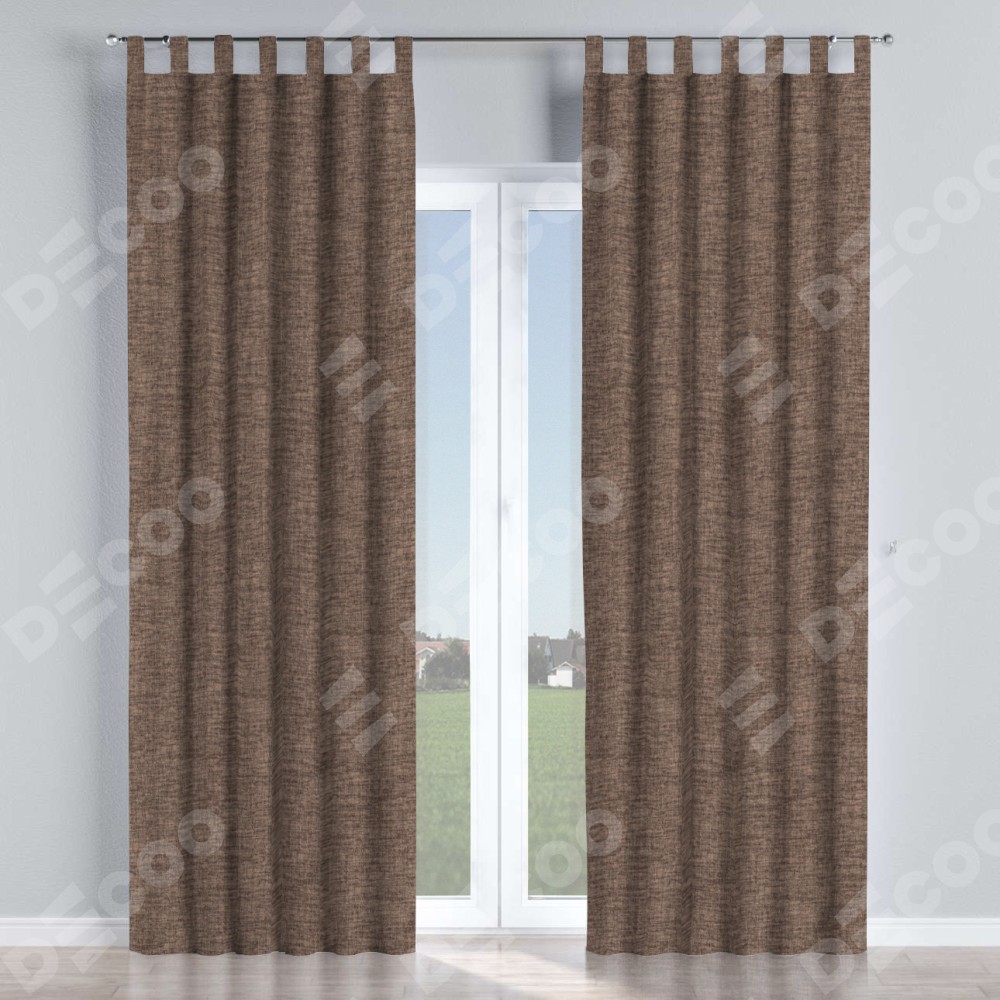 Комплект прямых штор, от производителя «Cortin», пошиты из ткани рогожка димаут коричневый, артикул ткани 91018. Данная модель пошита на петлях, комплектуется на выбор круглым карнизом и подходит для монтажа на стену или потолок. Прямые шторы на петлях шьются по стандарту с коэффициентом 1/2 (на 100 см. ширины проёма 200 см. ширины ткани), отличительным преимуществом данной модели является простой способ монтажа. Достаточно повесить ее на трубу и штора готова!