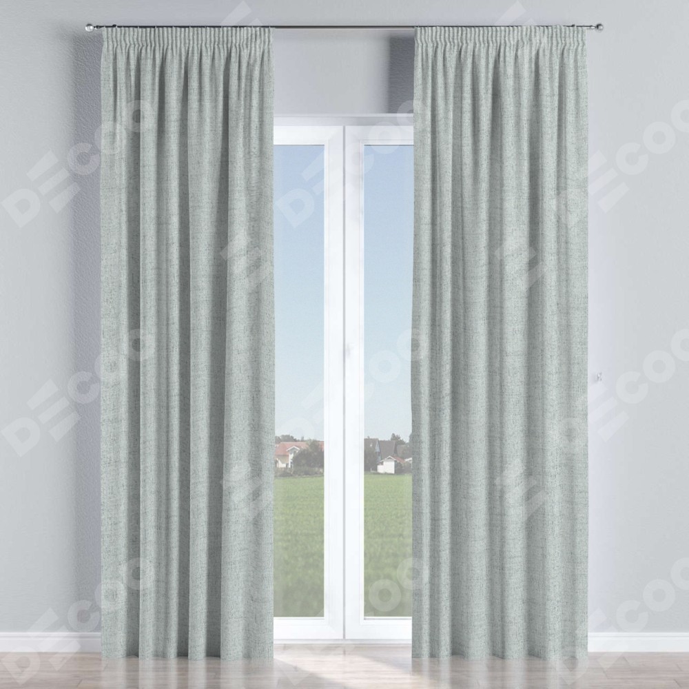 Комплект прямых штор, от производителя «Cortin», пошиты из ткани рогожка димаут серый, артикул ткани 91027. С изнаночной стороны в верхней части штор пристрачивается шторная лента с декоративными складками «Карандаш». Для создания элегантных складок прямые шторы шьются по стандарту с коэффициентом 1:2 (на 100 см. ширины проёма 200 см. ширины ткани).
