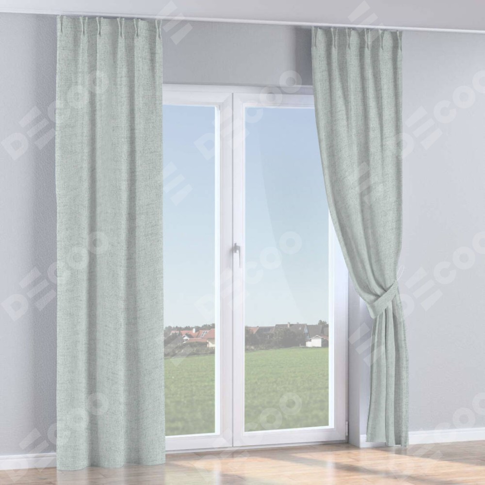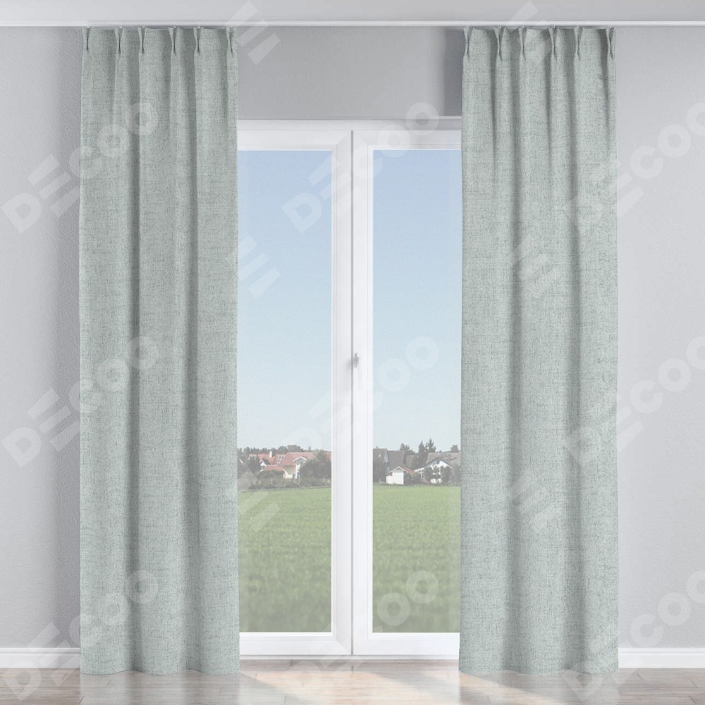 Комплект прямых штор, от производителя «Cortin», пошиты из ткани рогожка димаут серый, артикул ткани 91027. С изнаночной стороны в верхней части штор пристрачивается шторная лента с декоративными складками «Кустик». Для создания элегантных складок прямые шторы шьются по стандарту с коэффициентом 1:2 (на 100 см. ширины проёма 200 см. ширины ткани).