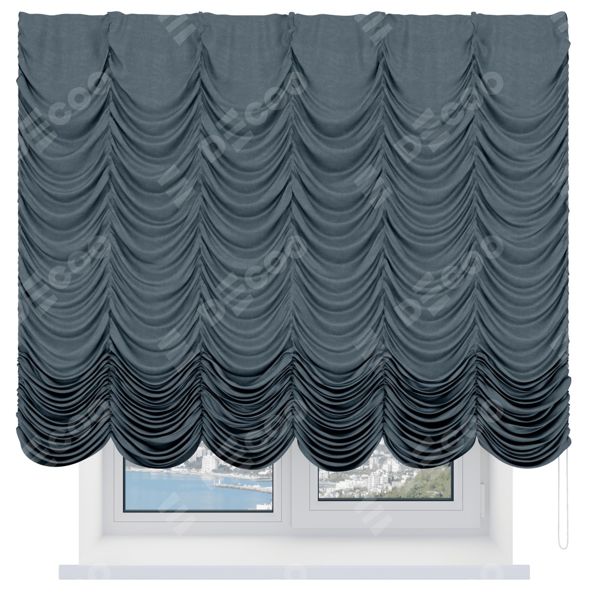 Французская штора производителя «Cortin», используется для проёма, пошита из ткани вельвет серый, артикул ткани 85542. Имеет универсальный механизм и подходит для монтажа: на потолок и на стену.