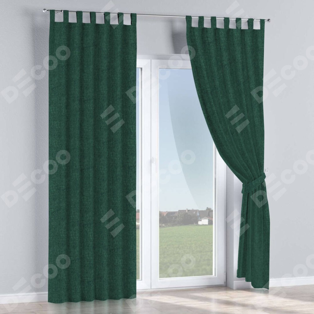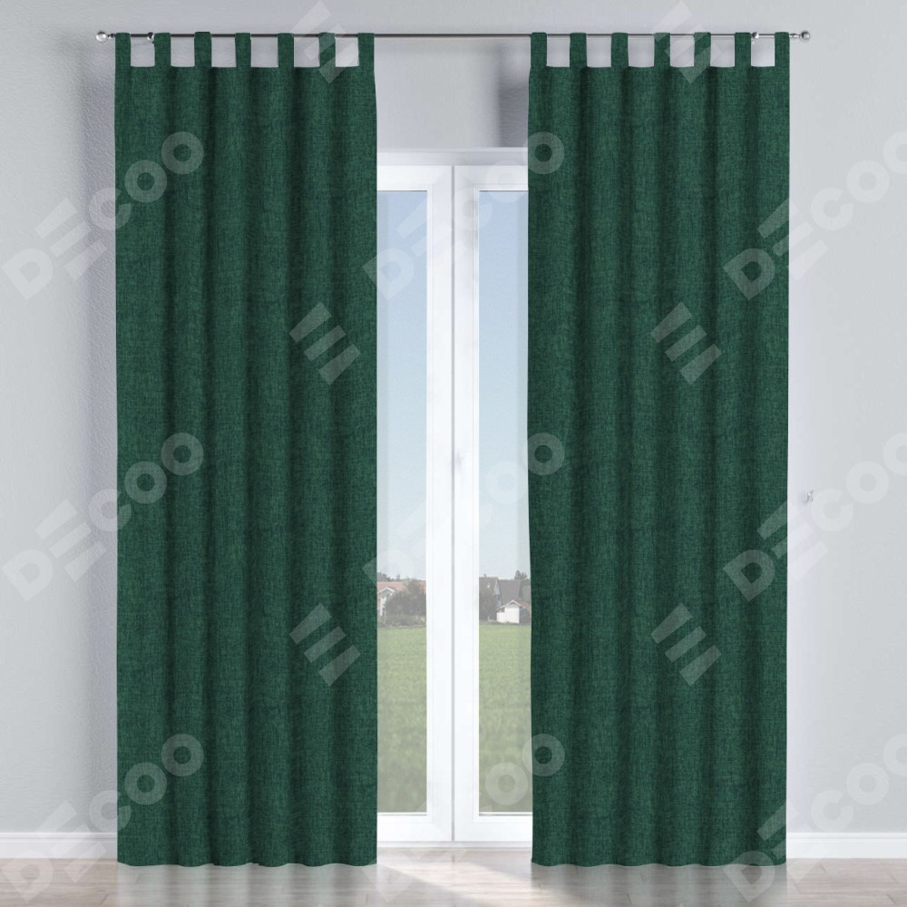 Комплект прямых штор, от производителя «Cortin», пошиты из ткани рогожка димаут тёмно-зелёный, артикул ткани 91022. Данная модель пошита на петлях, комплектуется на выбор круглым карнизом и подходит для монтажа на стену или потолок. Прямые шторы на петлях шьются по стандарту с коэффициентом 1/2 (на 100 см. ширины проёма 200 см. ширины ткани), отличительным преимуществом данной модели является простой способ монтажа. Достаточно повесить ее на трубу и штора готова!