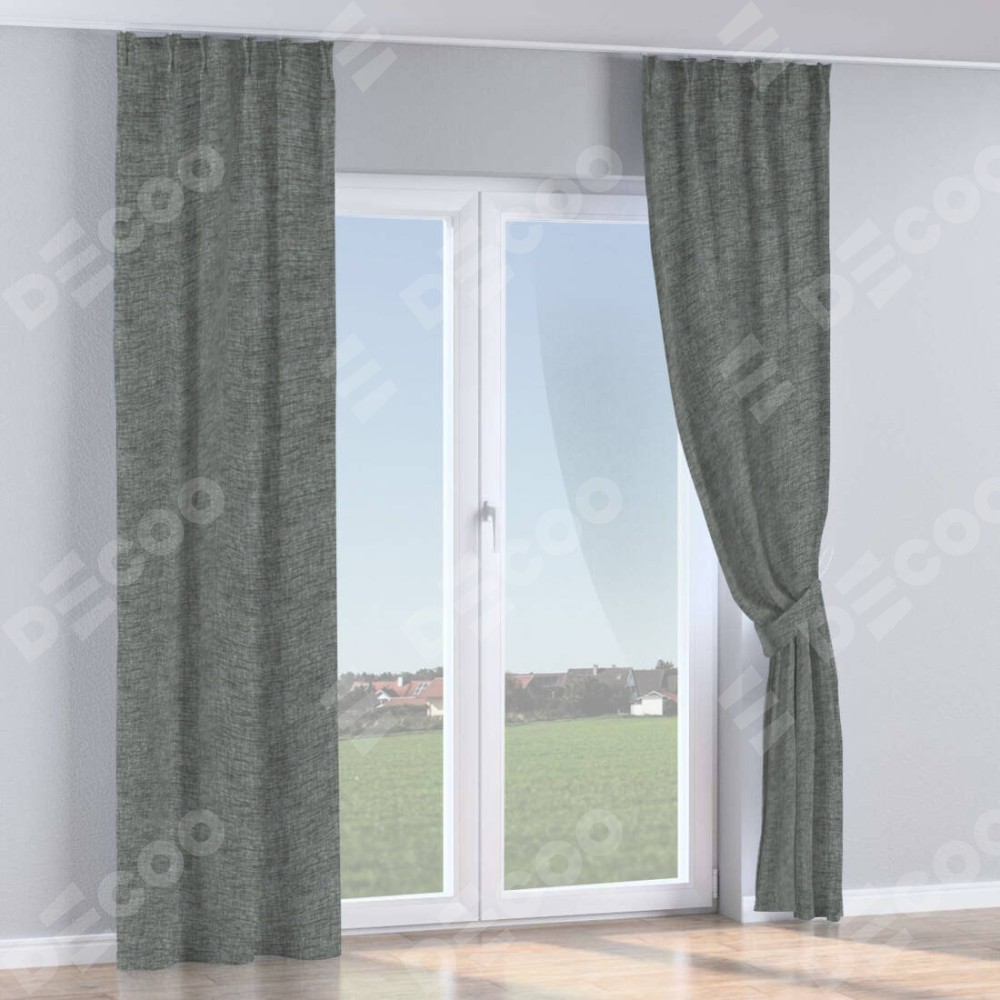 Комплект прямых штор, от производителя «Cortin», пошиты из ткани рогожка димаут тёмно-серый, артикул ткани 91029. С изнаночной стороны в верхней части штор пристрачивается шторная лента с декоративными складками «Кустик». Для создания элегантных складок прямые шторы шьются по стандарту с коэффициентом 1:2 (на 100 см. ширины проёма 200 см. ширины ткани).