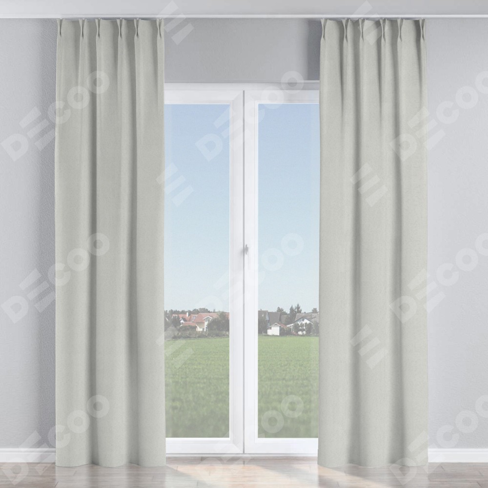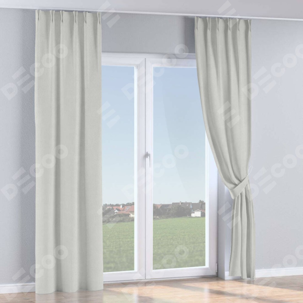 Комплект прямых штор, от производителя «Cortin», пошиты из ткани блэкаут однотонный милк, артикул ткани 23. С изнаночной стороны в верхней части штор пристрачивается шторная лента с декоративными складками «Кустик». Для создания элегантных складок прямые шторы шьются по стандарту с коэффициентом 1:2 (на 100 см. ширины проёма 200 см. ширины ткани).