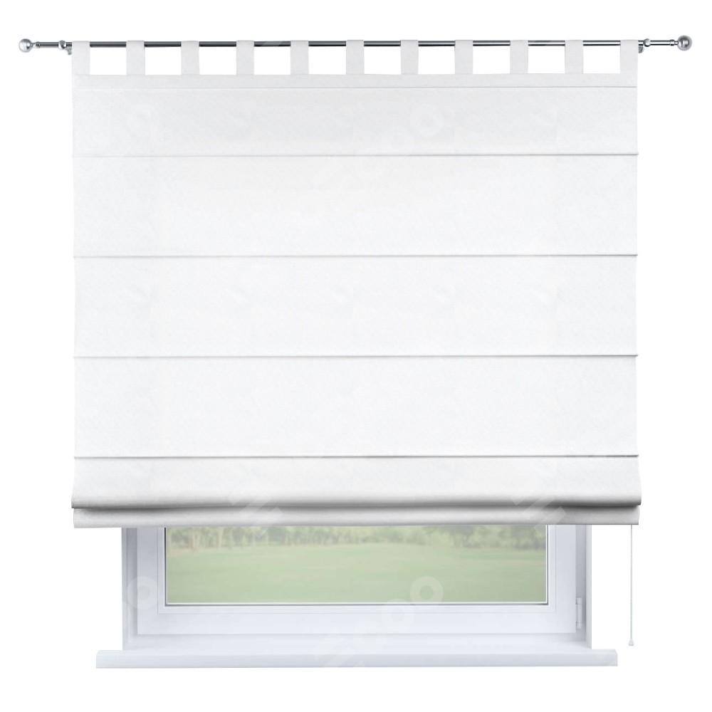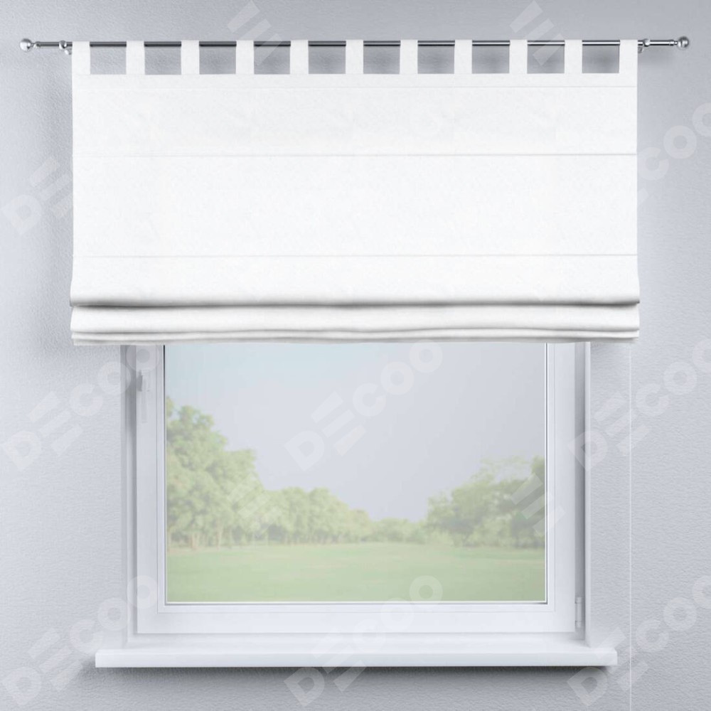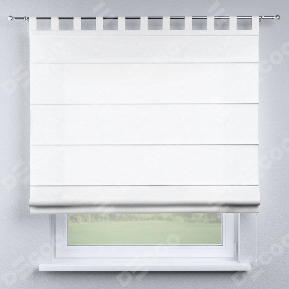 Римская штора производителя «Cortin», используется для проёма, пошита из ткани вельвет белоснежный, артикул ткани 92698. Данная модель пошита на петлях, комплектуется на выбор круглым карнизом и подходит для монтажа на стену. Римская штора на петлях имеет простую систему регулировки высоты, отличительным преимуществом данной модели является простой способ монтажа. Достаточно повесить ее на трубу и штора готова!