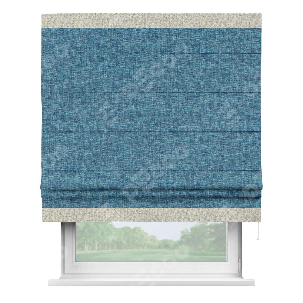 Римская штора «Кортин» для проёма, рогожка димаут лазурно-синий, с кантом Горизонт