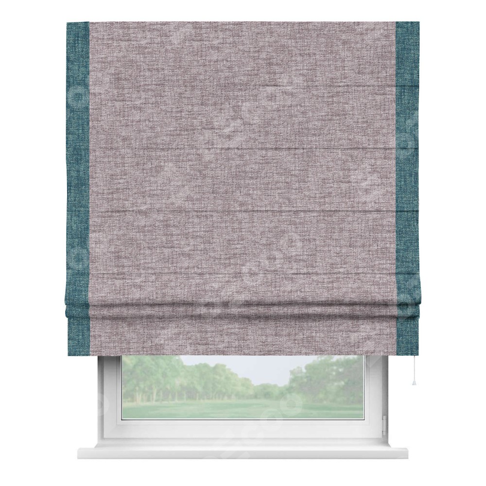 Римская штора «Кортин» для проёма, рогожка димаут розовый кварц, с кантом Стрим Дуо