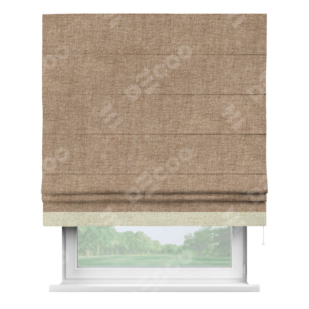 Римская штора «Кортин» для проёма, рогожка димаут светло-коричневый, с кантом Джестер