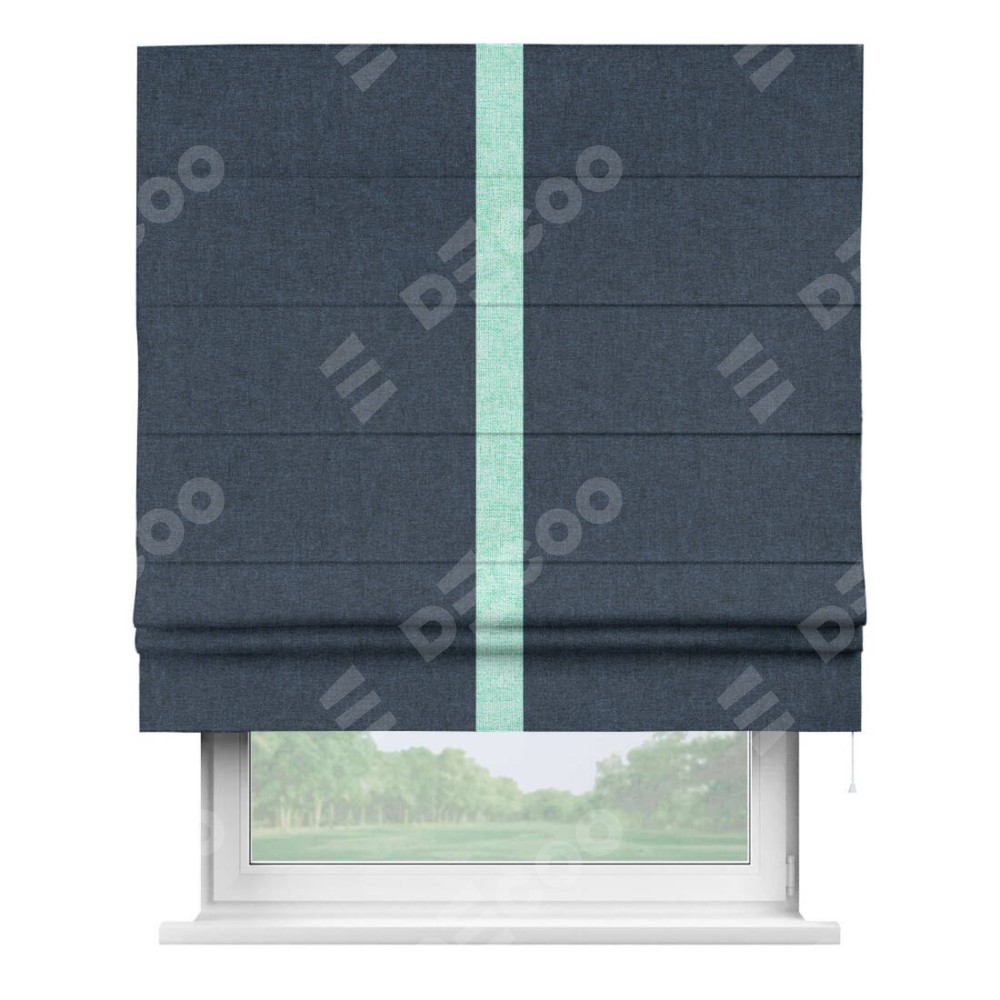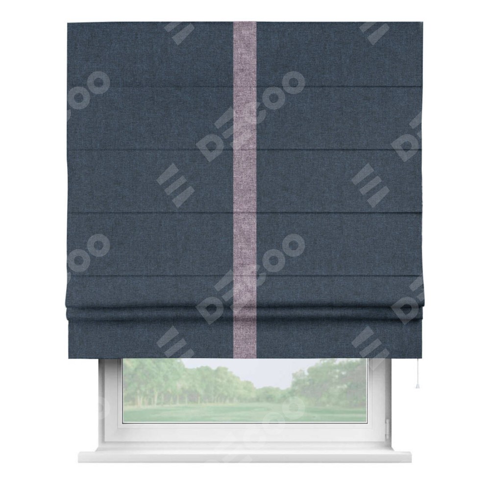 Римская штора «Кортин» для проёма, лён кашемир синий, с кантом Хайвэй