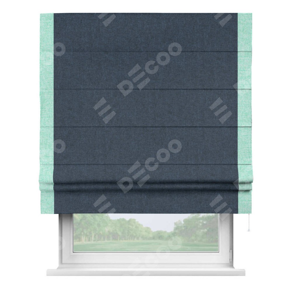 Римская штора «Кортин» для проёма, лён кашемир синий, с кантом Стрим Дуо