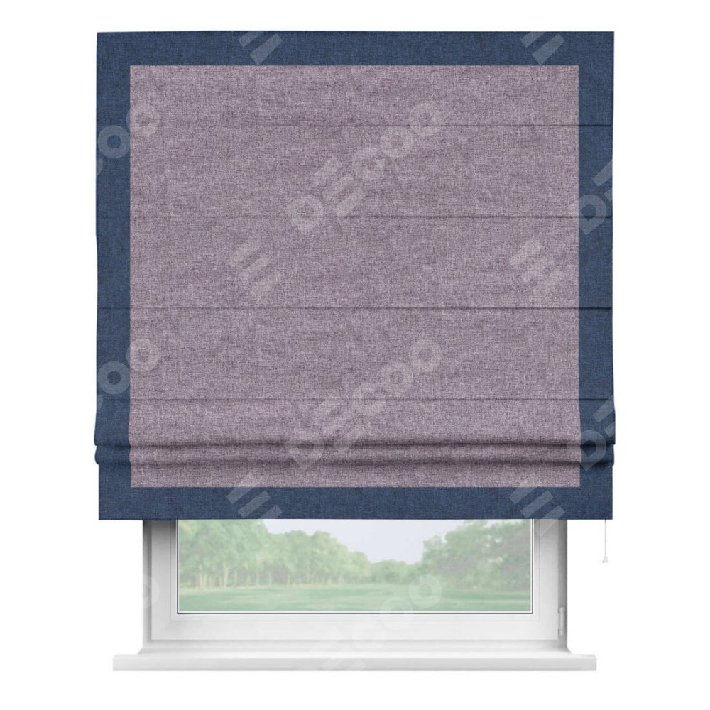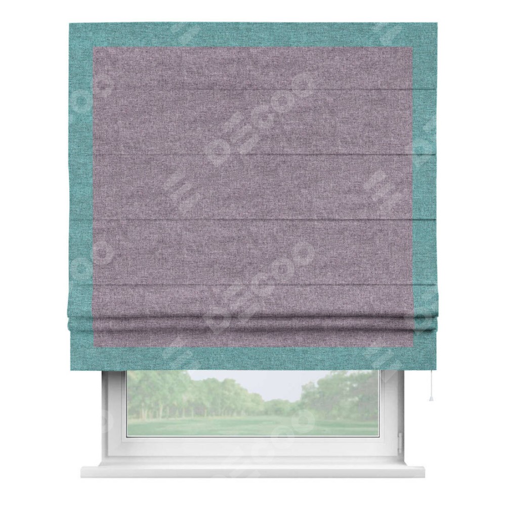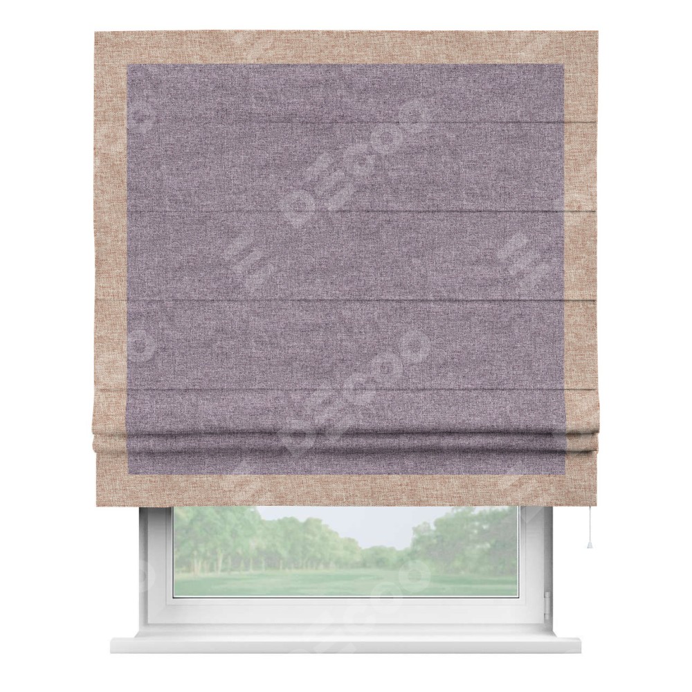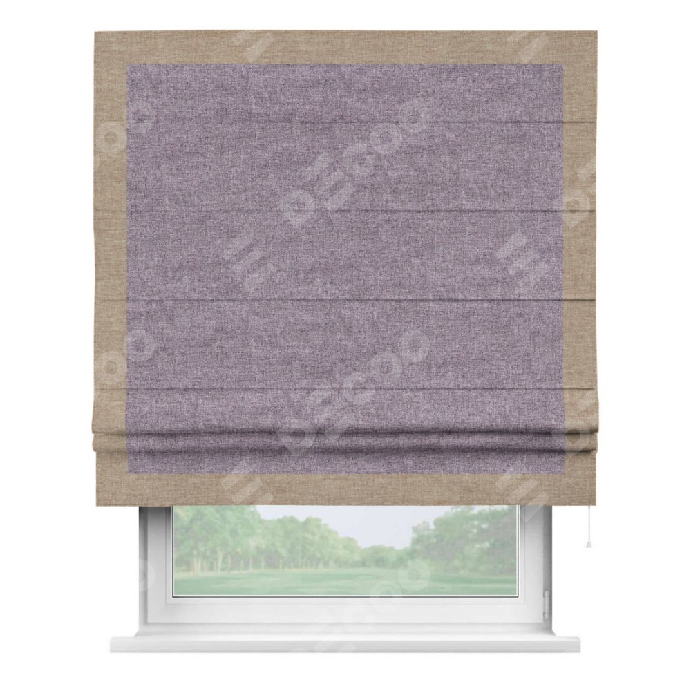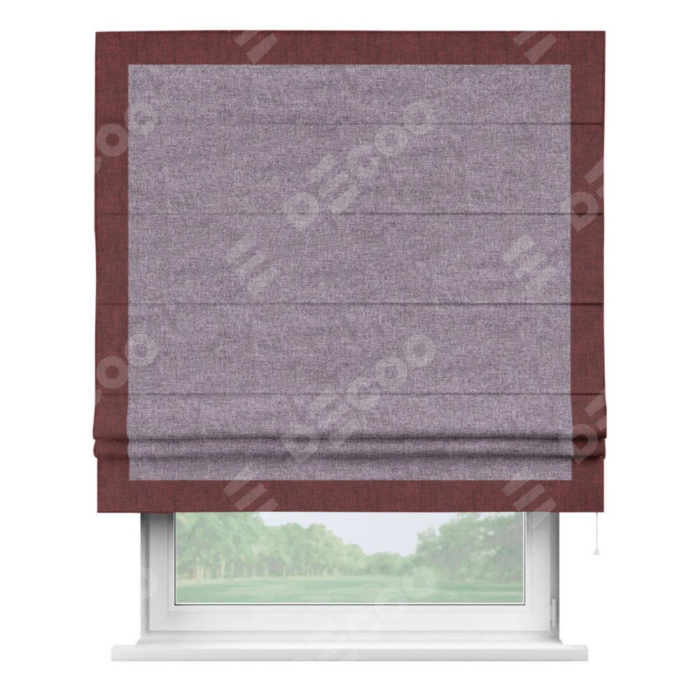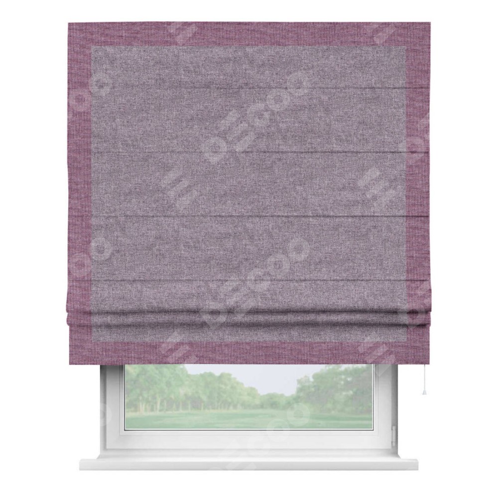 Римская штора «Кортин» для проёма, лён кашемир фиолетовый, с кантом Чесс