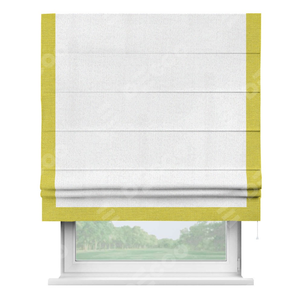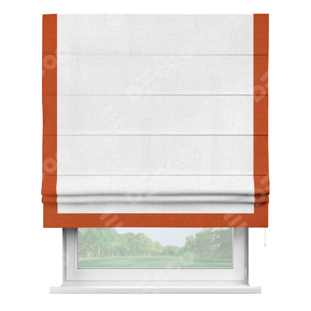 Римская штора с отделкой кантом «Виктория», пошита из ткани лён белоснежный, артикул: 95632. представляет собой элегантное решение для оконного оформления. Кант по бокам и снизу шторы добавляет изысканности и аккуратности внешнему виду, подчеркивая линии и форму шторы. Этот элемент декора не только украшает, но и выполняет практическую функцию, защищая края ткани от износа. Кант может быть выполнен в контрастном или гармонирующем цвете, что позволяет добиться различных стилевых эффектов и легко вписать штору в интерьер комнаты.