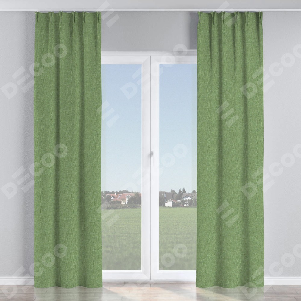 Комплект прямых штор, от производителя «Cortin», пошиты из ткани лён димаут светло-салатовый, артикул ткани 128528. С изнаночной стороны в верхней части штор пристрачивается шторная лента с декоративными складками «Кустик». Для создания элегантных складок рекомендуемый коэффициент 1:2 (на 100 см. ширины проёма 200 см. ширины ткани). Важно! Ширина штор указана без учёта коэффициента сборки!