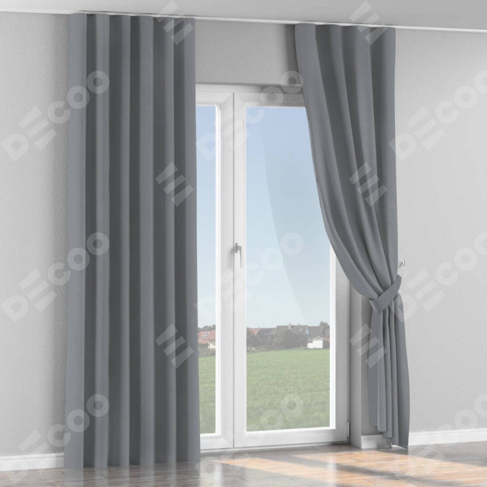 Комплект прямых штор, от производителя «Cortin», пошиты из ткани однотонный блэкаут серый, артикул ткани 146436. С изнаночной стороны в верхней части штор пристрачивается шторная лента с декоративными складками «Волна». Для создания элегантных складок рекомендуемый коэффициент 1:2 (на 100 см. ширины проёма 200 см. ширины ткани). Важно! Ширина штор указана без учёта коэффициента сборки!