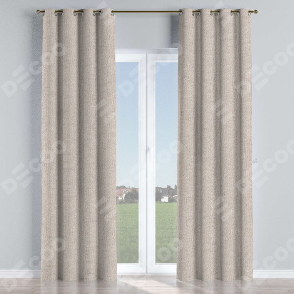 Комплект прямых штор, от производителя «Cortin», пошиты из ткани лён димаут бежевый, артикул ткани 01. Данная модель пошита на люверсах, комплектуется на выбор круглым карнизом и подходит для монтажа на стену или потолок. Для создания элегантных складок рекомендуемый коэффициент 1:2 (на 100 см. ширины проёма 200 см. ширины ткани). Важно! Ширина штор указана без учёта коэффициента сборки!