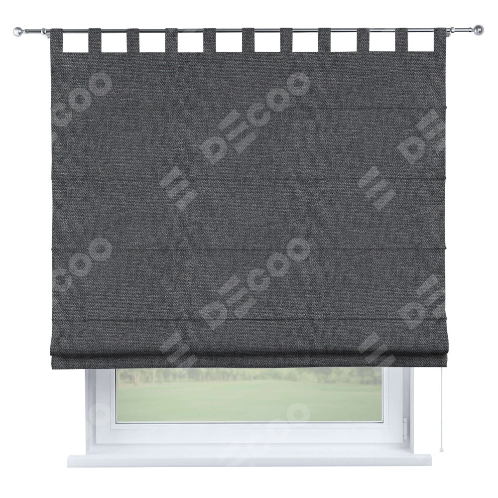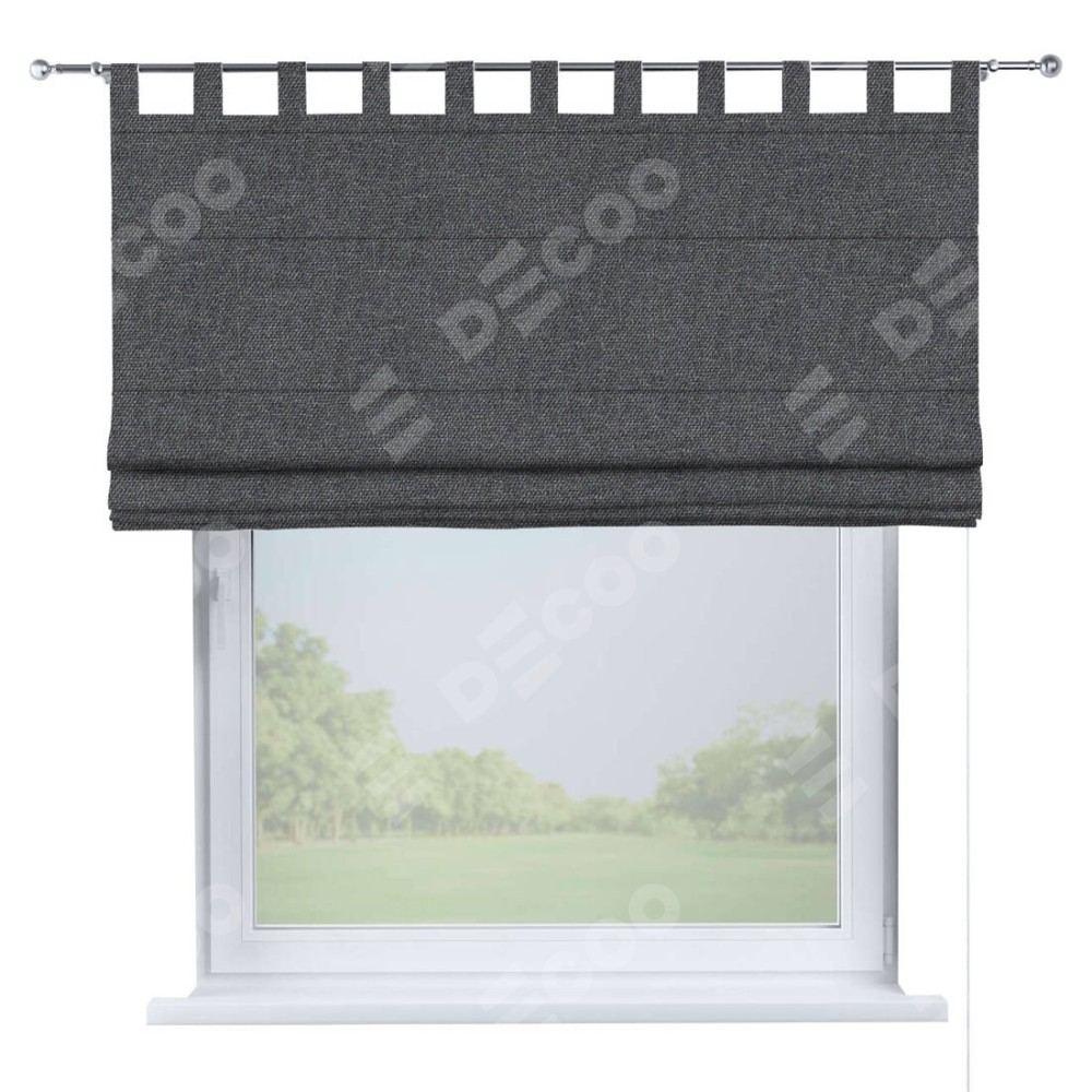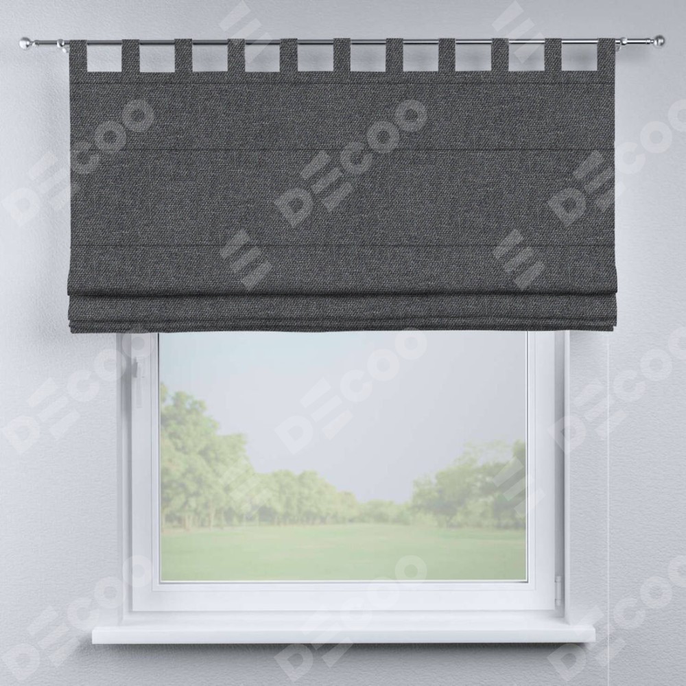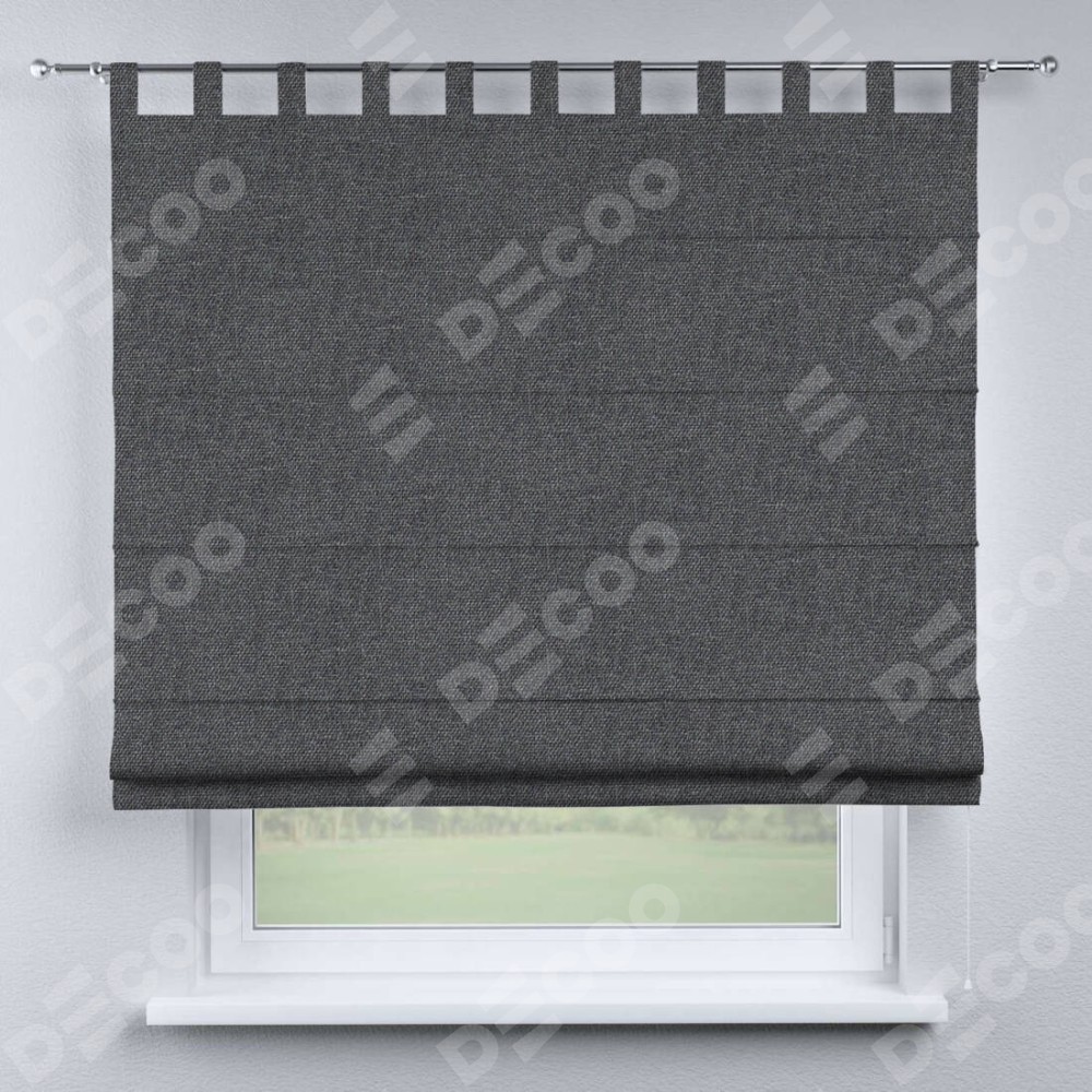 Римская штора производителя «Cortin», используется для проёма, пошита из ткани лён димаут графит, артикул ткани 140644. Данная модель пошита на петлях, комплектуется на выбор круглым карнизом и подходит для монтажа на стену. Римская штора на петлях имеет простую систему регулировки высоты, отличительным преимуществом данной модели является простой способ монтажа. Достаточно повесить ее на трубу и штора готова!