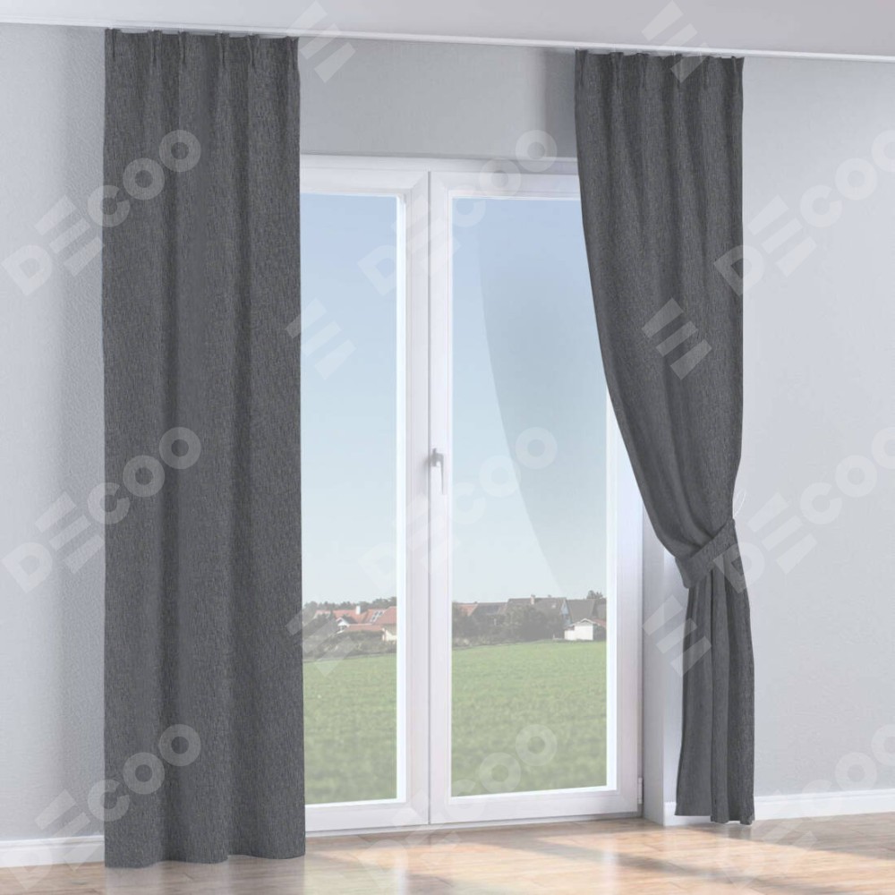 Комплект прямых штор, от производителя «Cortin», пошиты из ткани лён димаут графит, артикул ткани 140644. С изнаночной стороны в верхней части штор пристрачивается шторная лента с декоративными складками «Кустик». Для создания элегантных складок рекомендуемый коэффициент 1:2 (на 100 см. ширины проёма 200 см. ширины ткани). Важно! Ширина штор указана без учёта коэффициента сборки!