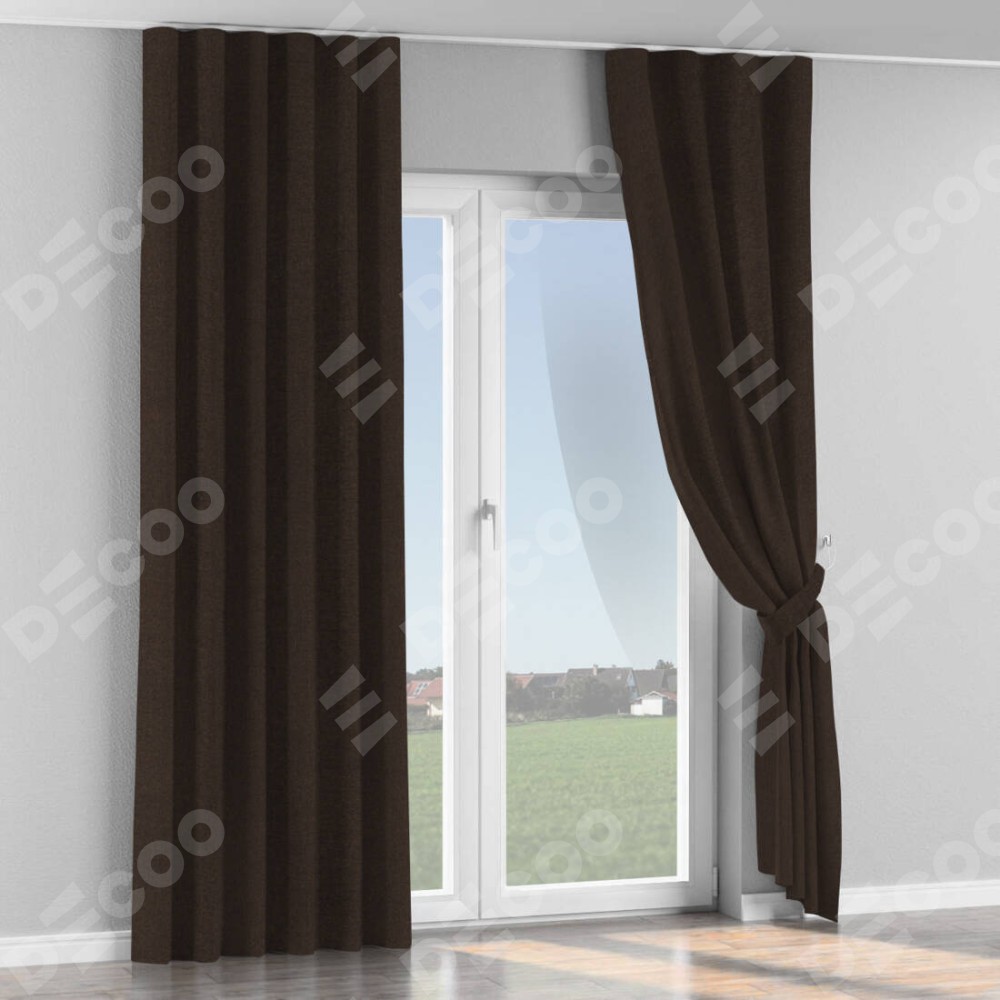 Комплект прямых штор, от производителя «Cortin», пошиты из ткани лён тёмно-коричневый, артикул ткани 104497. С изнаночной стороны в верхней части штор пристрачивается шторная лента с декоративными складками «Волна». Для создания элегантных складок рекомендуемый коэффициент 1:2 (на 100 см. ширины проёма 200 см. ширины ткани). Важно! Ширина штор указана без учёта коэффициента сборки!