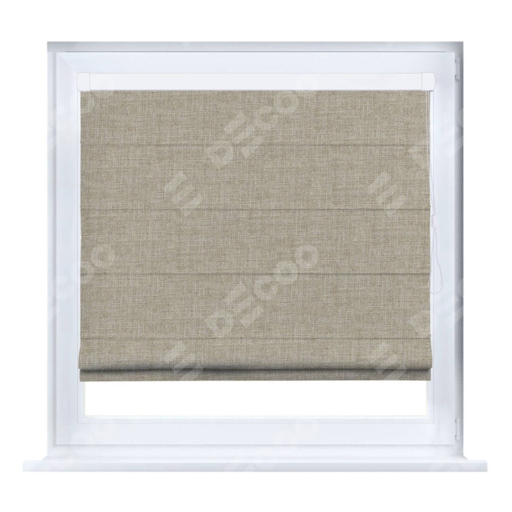 Римская штора производителя «Cortin», устанавливается на створку окна, пошита из ткани лён бежевый, артикул 143839. Штора шьётся по индивидуальным размерам, для данного типа римской шторы возможная ширина от 35 до 150 см., высота до 250 см.