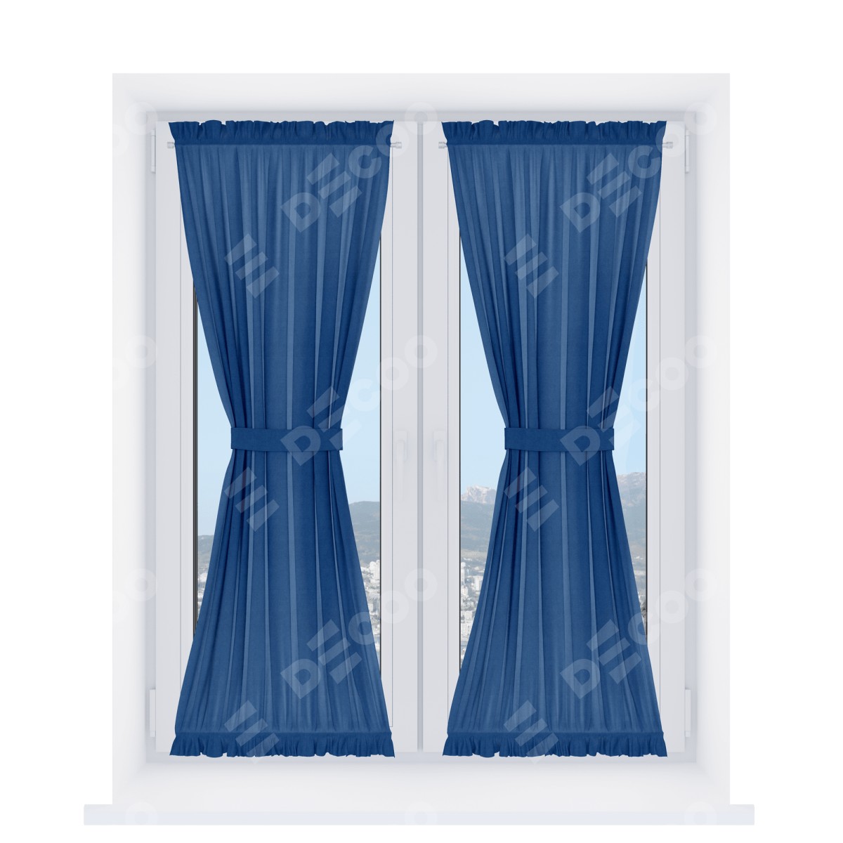 Штора «Песочные часы» производителя «Cortin», используется для створок окон и дверей, пошита из ткани вельвет синий, артикул ткани 85554.