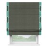 Римская штора производителя «Cortin», используется для проёма, пошита из ткани лён димаут графит, артикул 27. Отделка шторы кантом «Стрим Дуо» на кантах расположены люверсы с пояском, ткань для канта используется лён димаут разной расцветки на выбор. Ткань для пояска обычно используется из основной ткани шторы, а так же можно сделать из любой расцветки по желанию. Имеет универсальный механизм и подходит для монтажа: на потолок, на стену и в нишу.