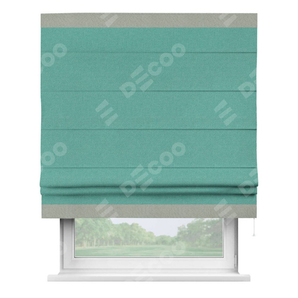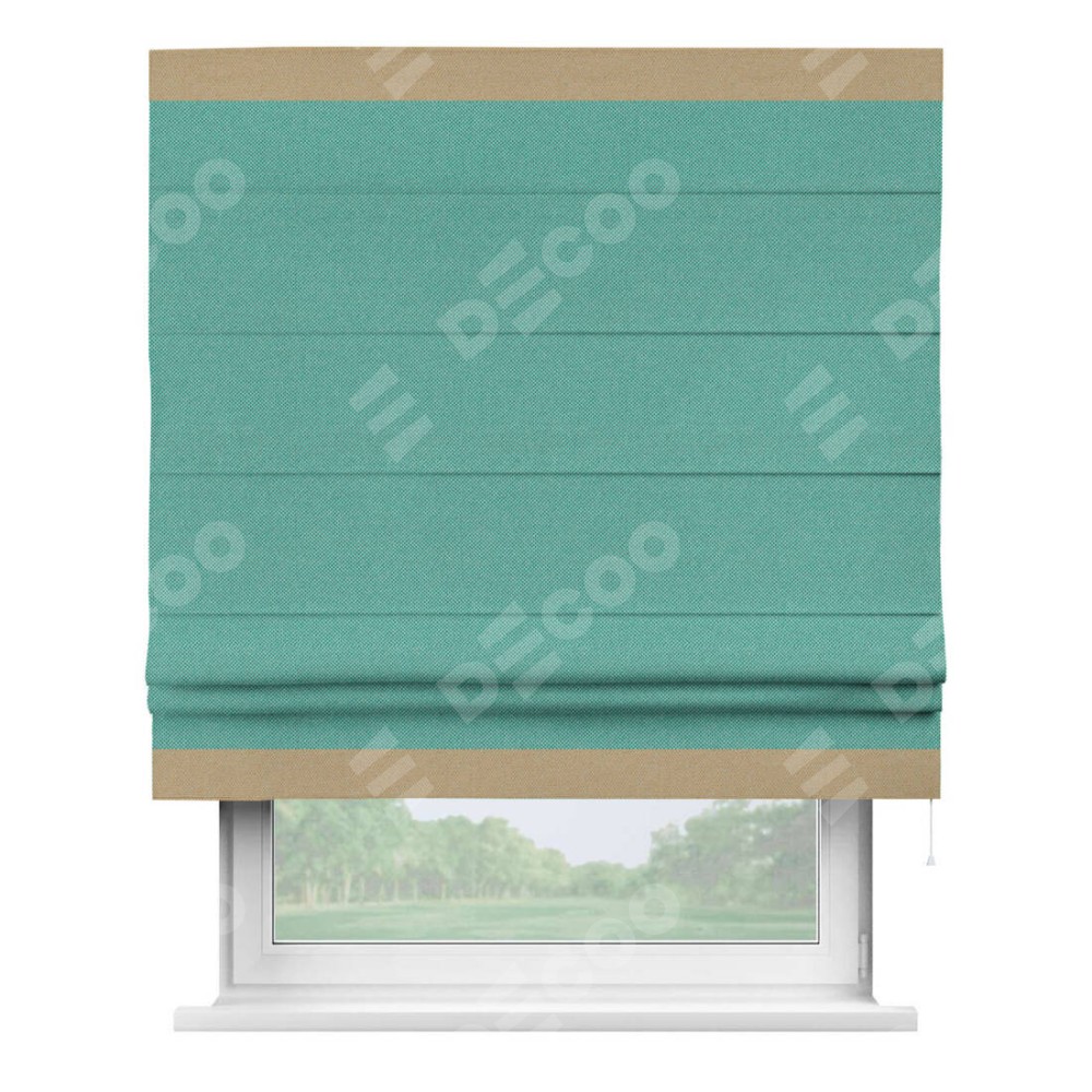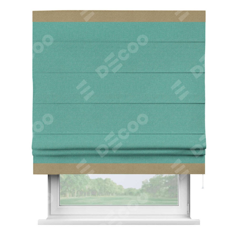 Римская штора «Кортин» с кантом Горизонт, для проема, ткань лён димаут, бирюзовый