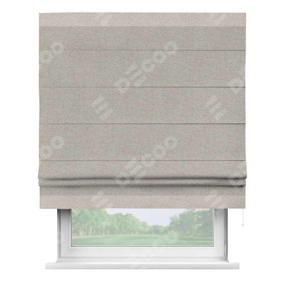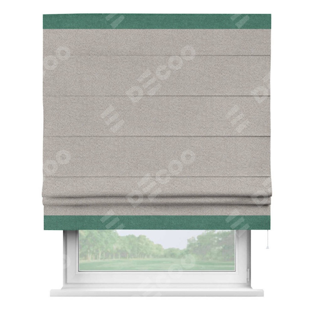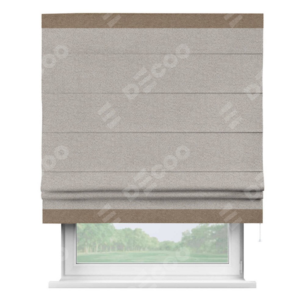 Римская штора «Кортин» для проема, лён димаут серо-бежевый с кантом Горизонт