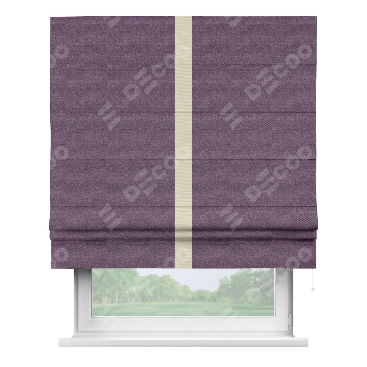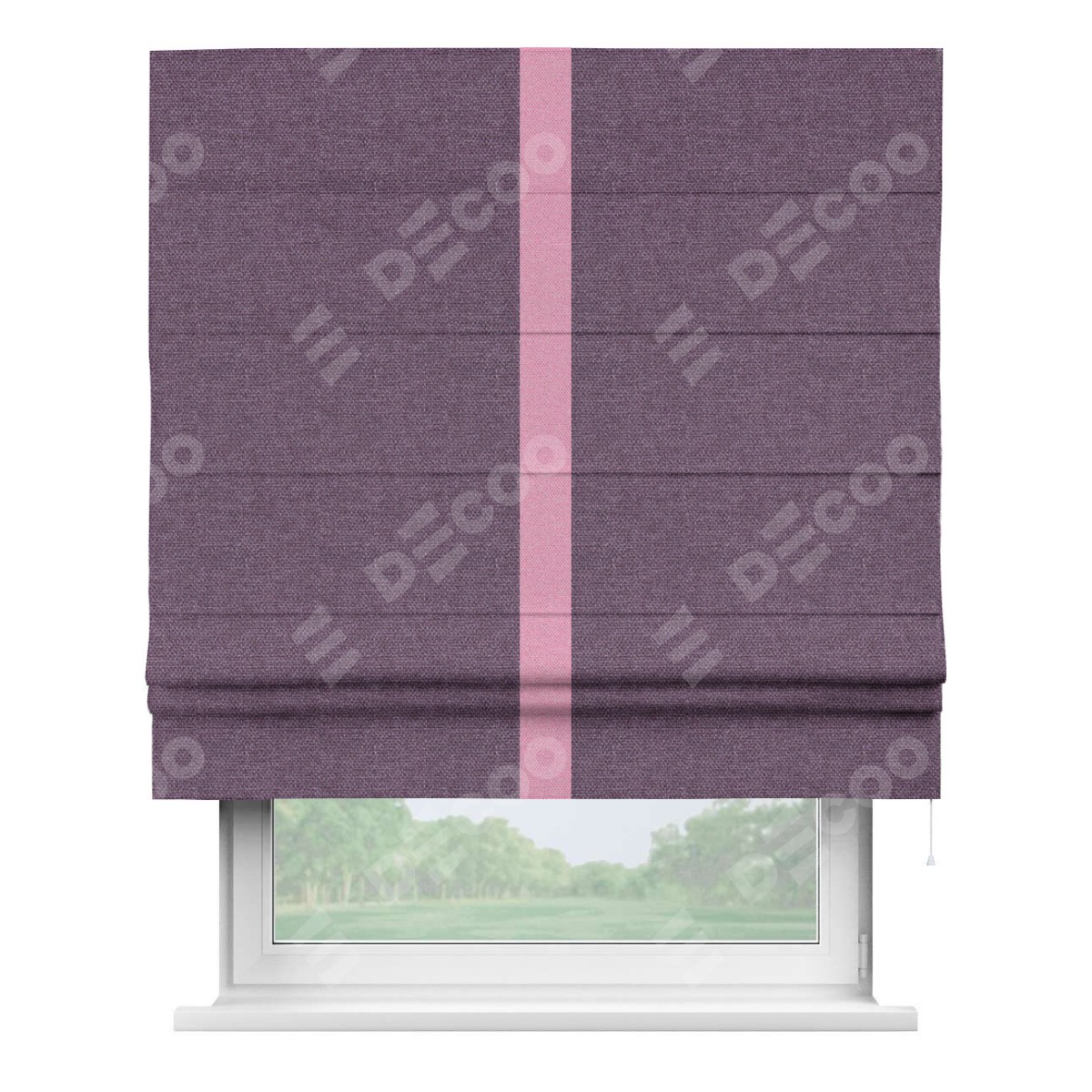 Римская штора производителя «Cortin», используется для проёма, пошита из ткани лён димаут брусника, артикул 16. Отделка шторы кантом «Хайвэй», ткань для канта используется из льна димаут разной расцветки на выбор. Имеет универсальный механизм и подходит для монтажа: на потолок, на стену и в нишу.