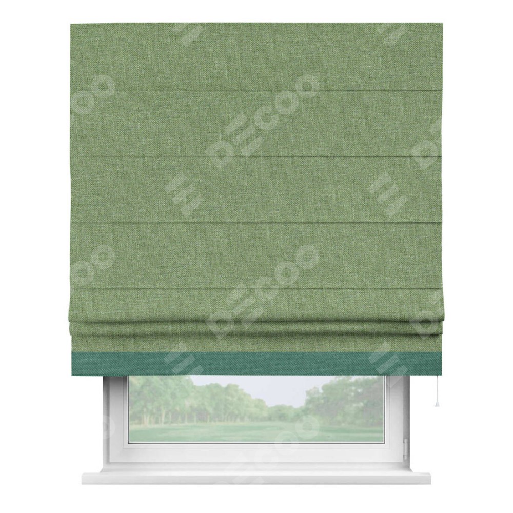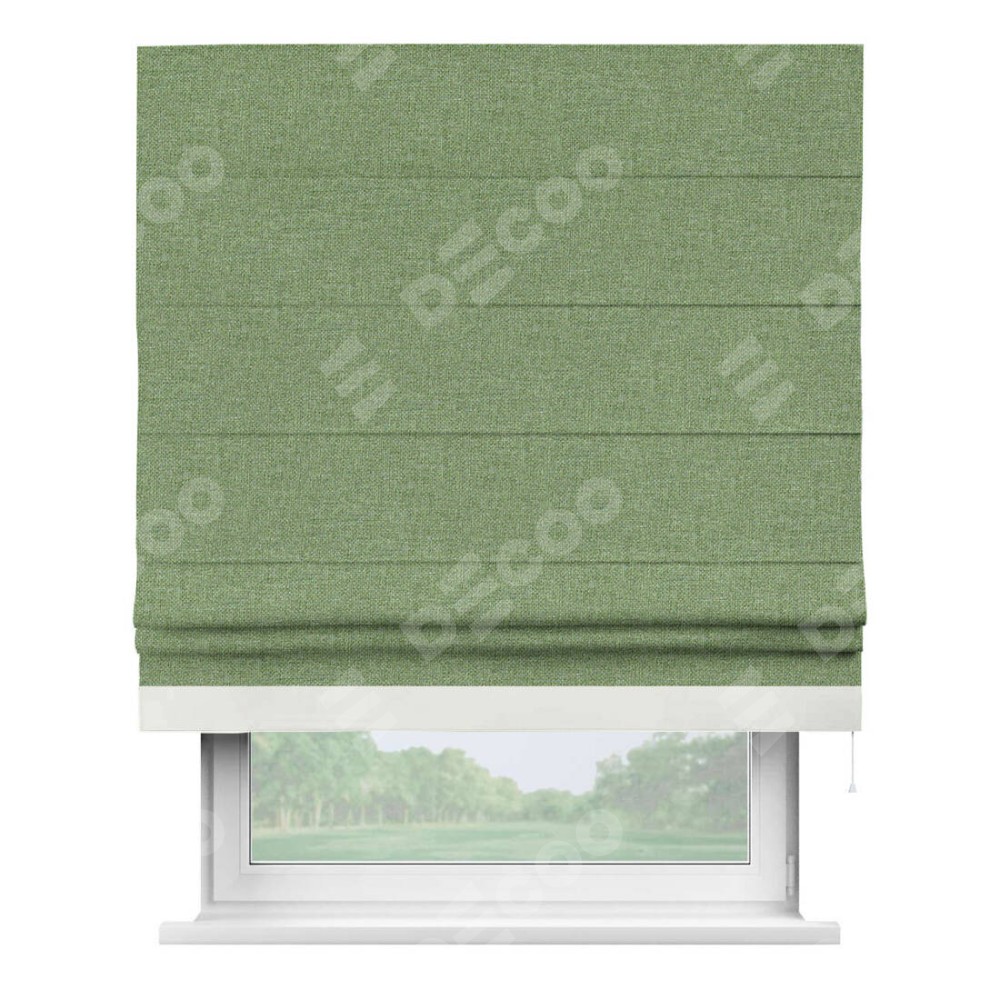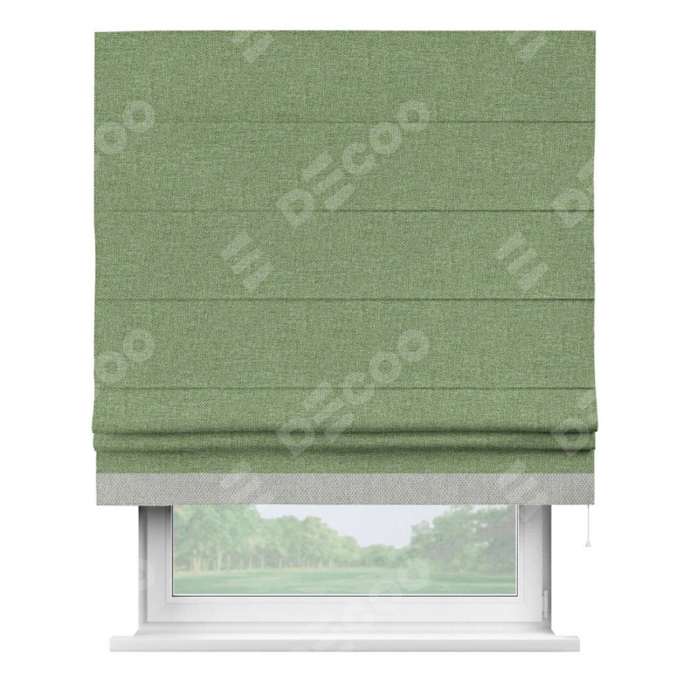 Римская штора «Cortin» для проёма, лён димаут светло-салатовый с кантом Джестер