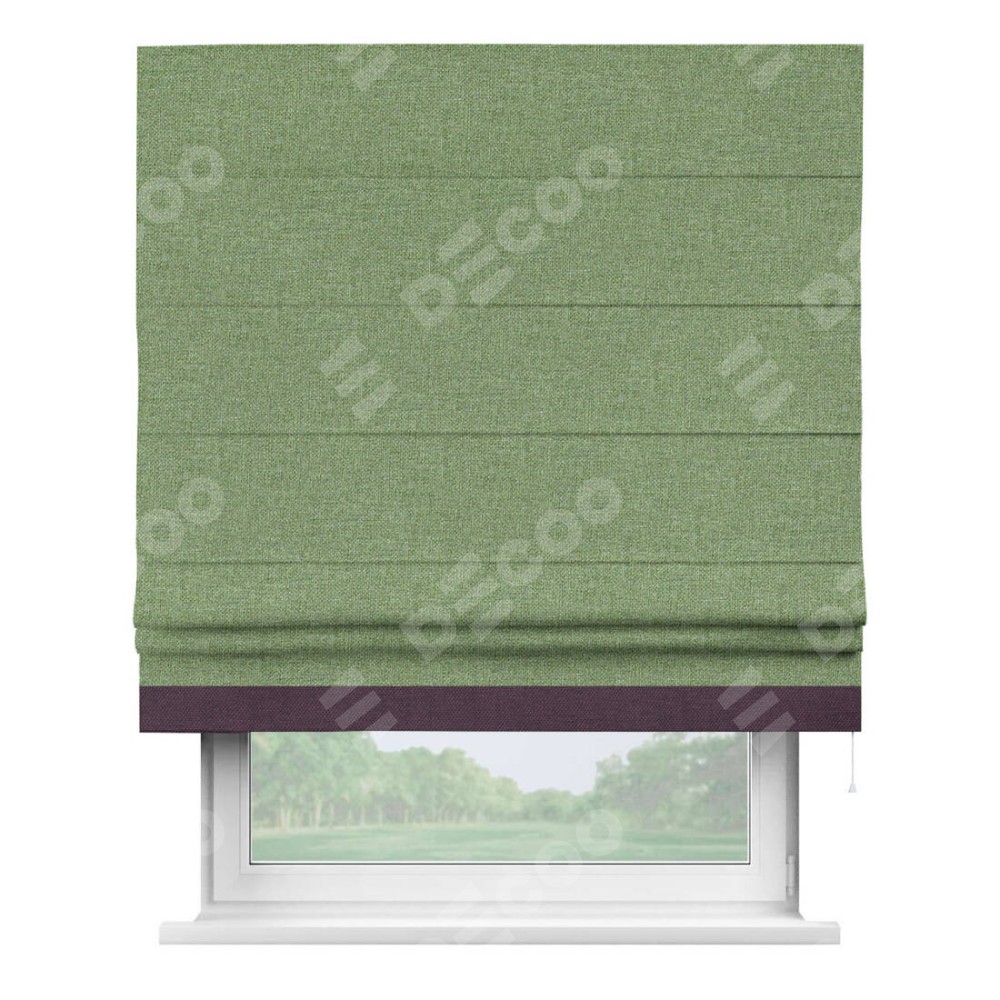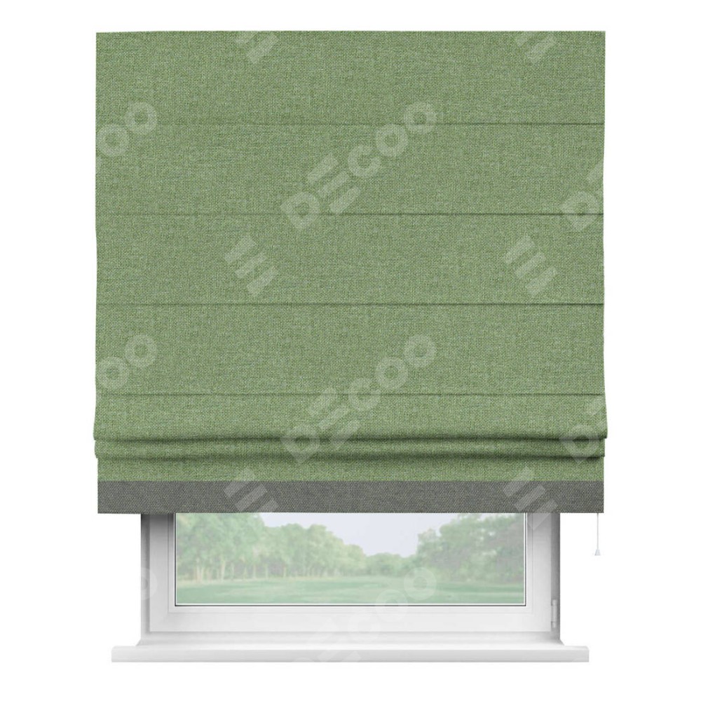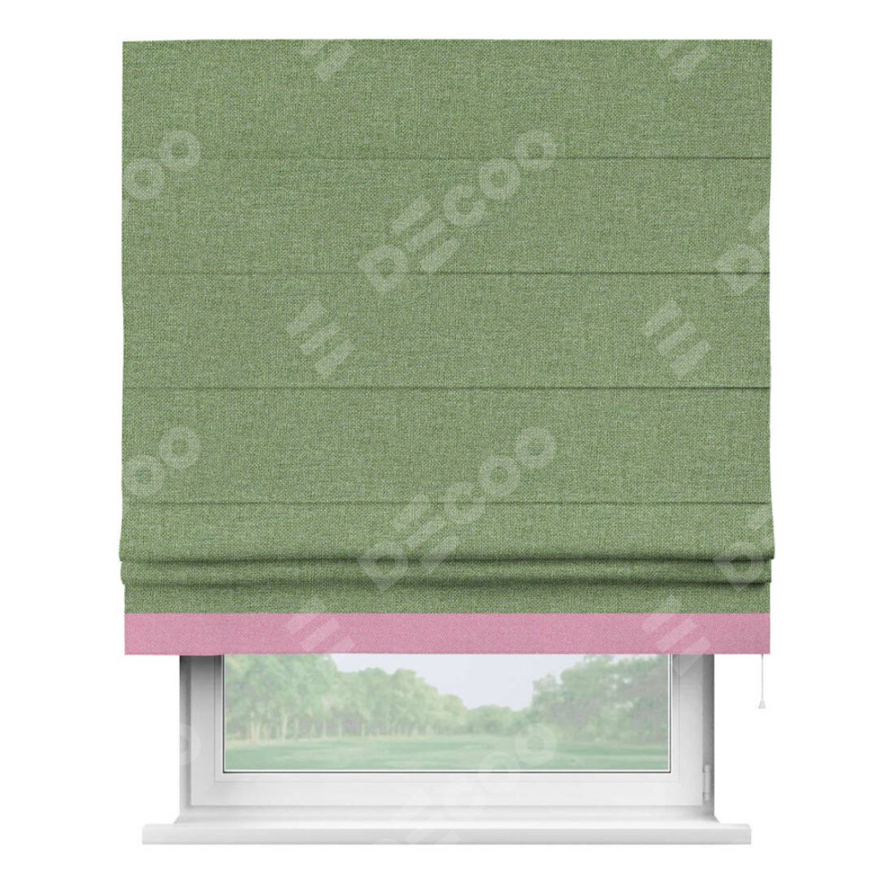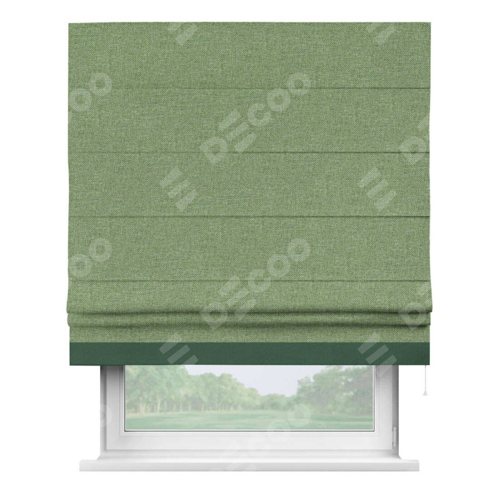 Римская штора «Cortin» для проёма, лён димаут светло-салатовый с кантом Джестер