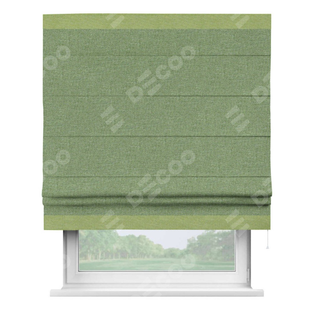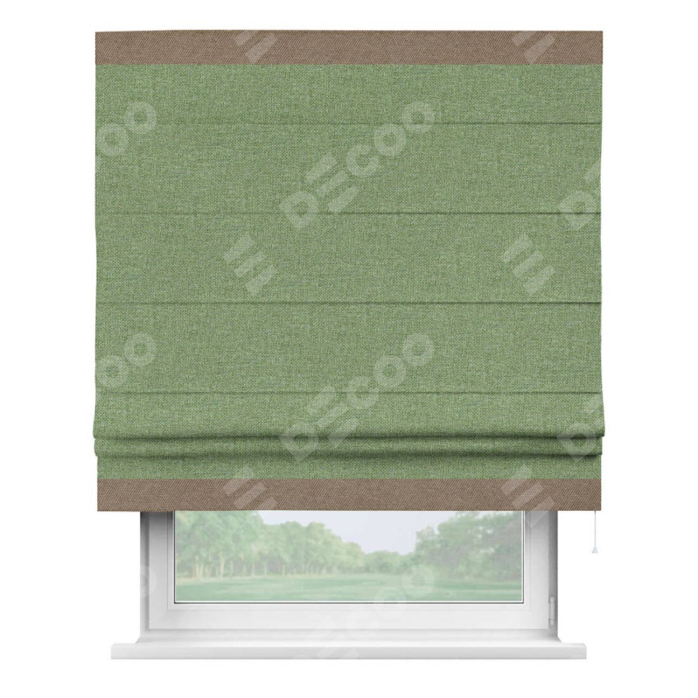 Римская штора «Cortin» для проёма, лён димаут светло-салатовый с кантом Горизонт