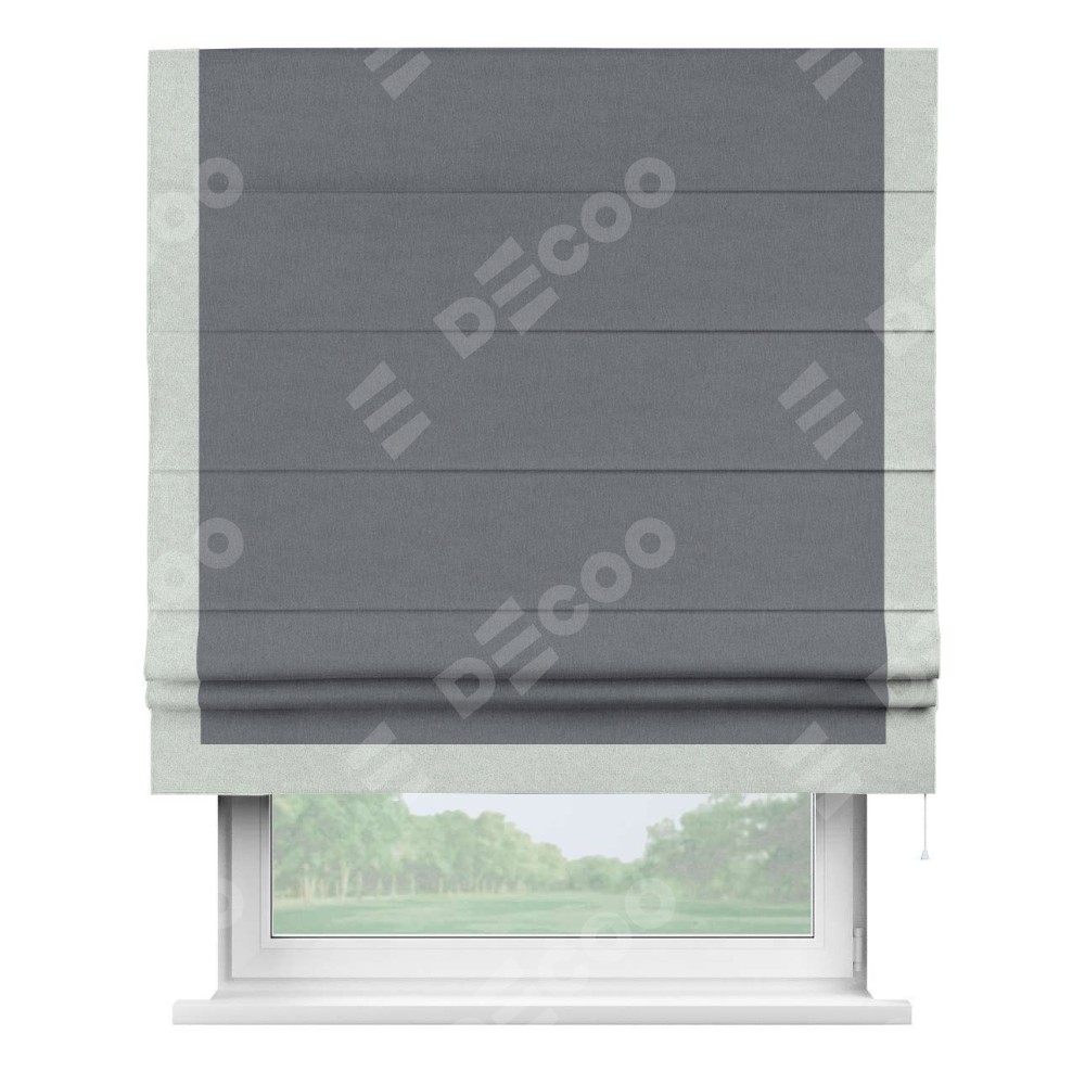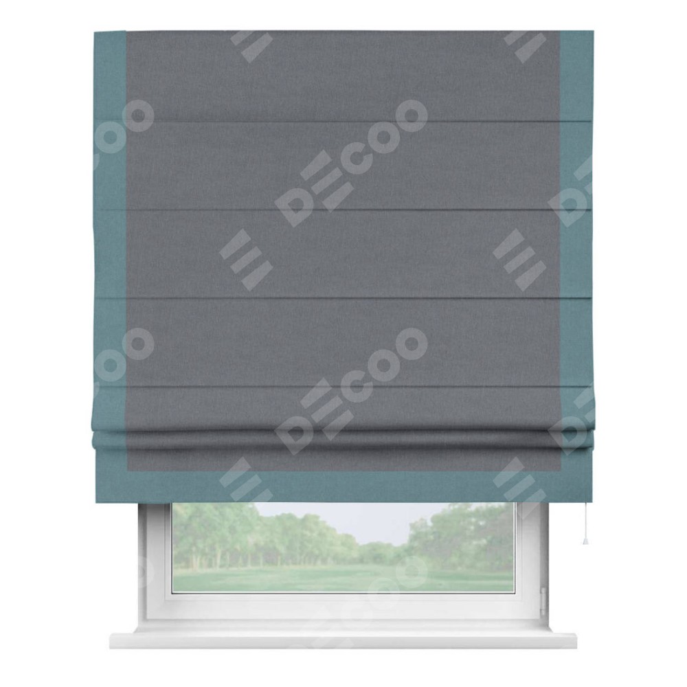Римская штора «Кортин» с кантом Виктория, для проема, лён блэкаут тёмно-серый