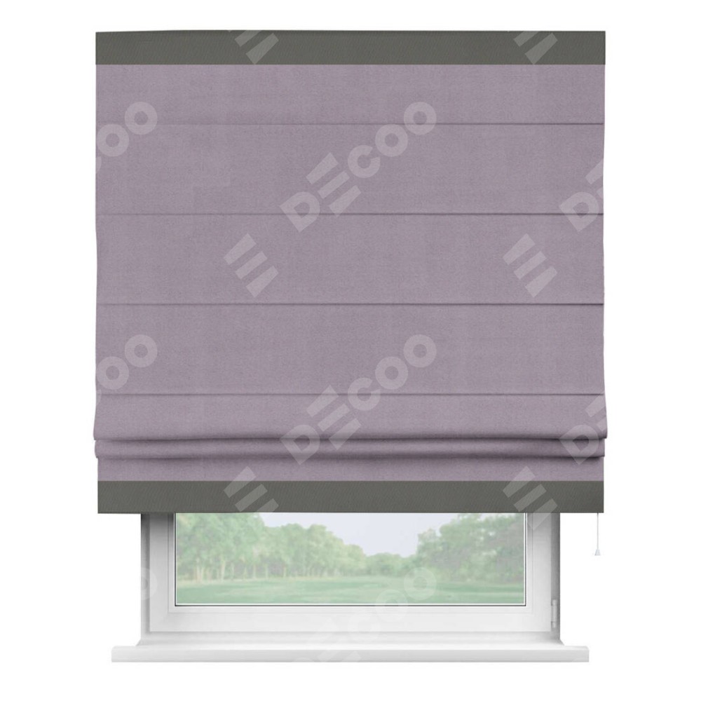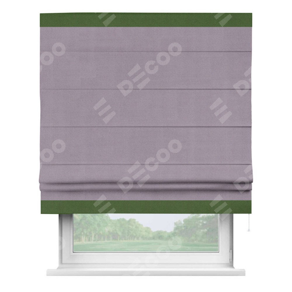 Римская штора «Кортин» для проёма, блэкаут однотонный лиловый с кантом Горизонт