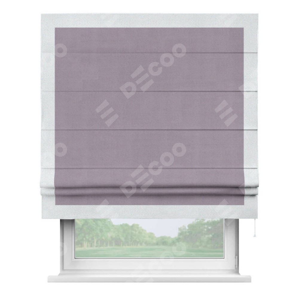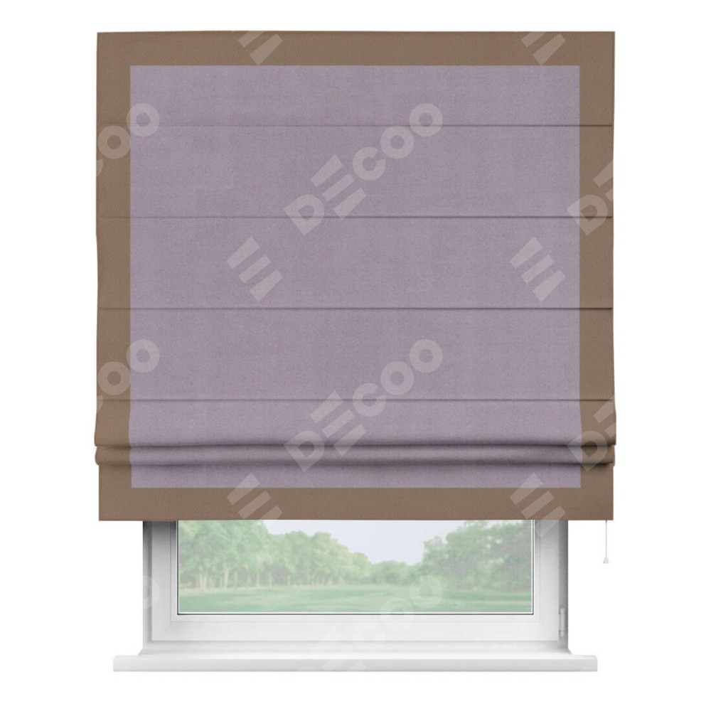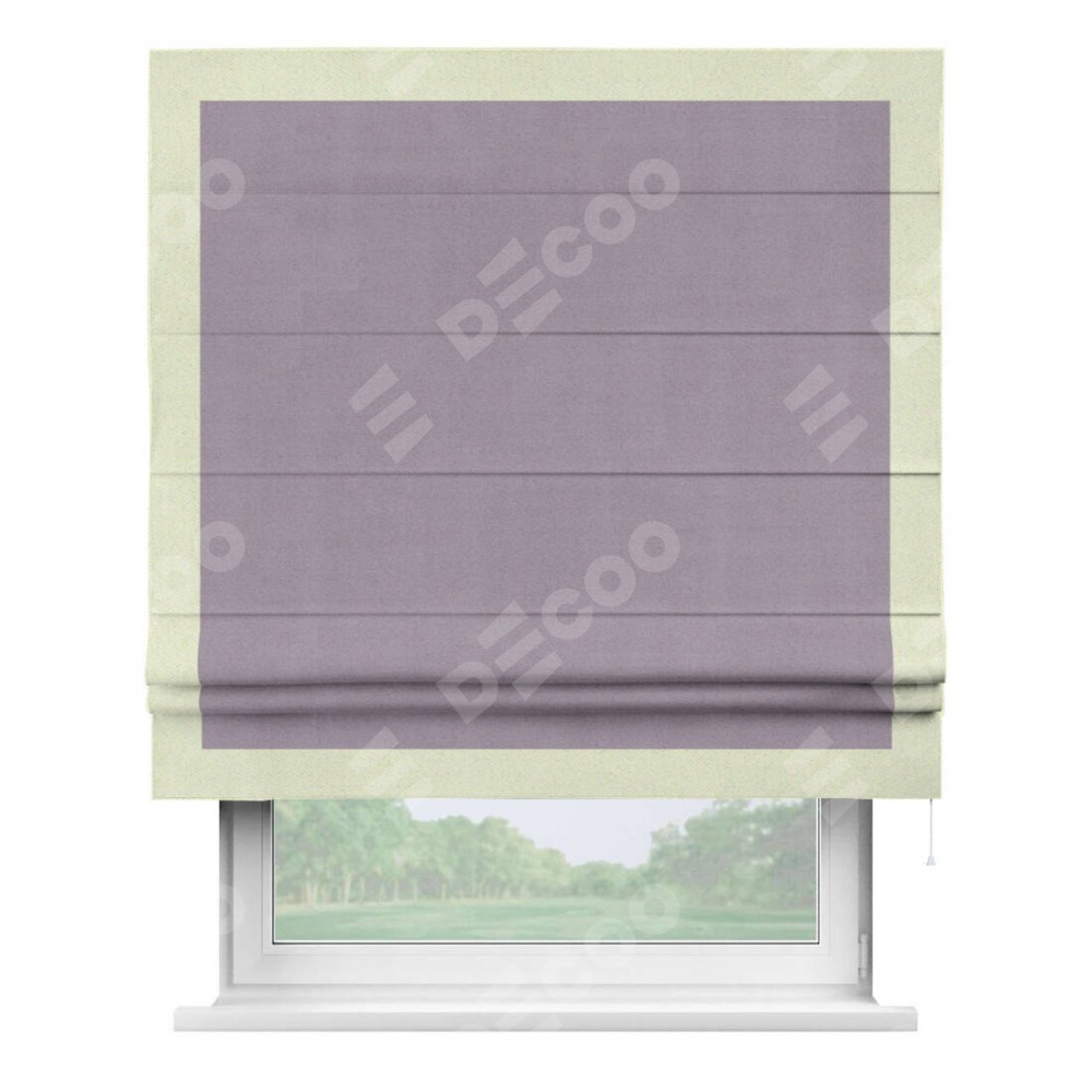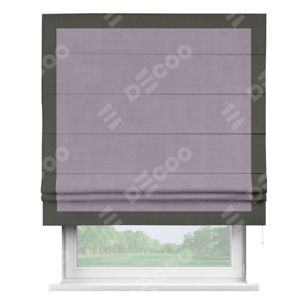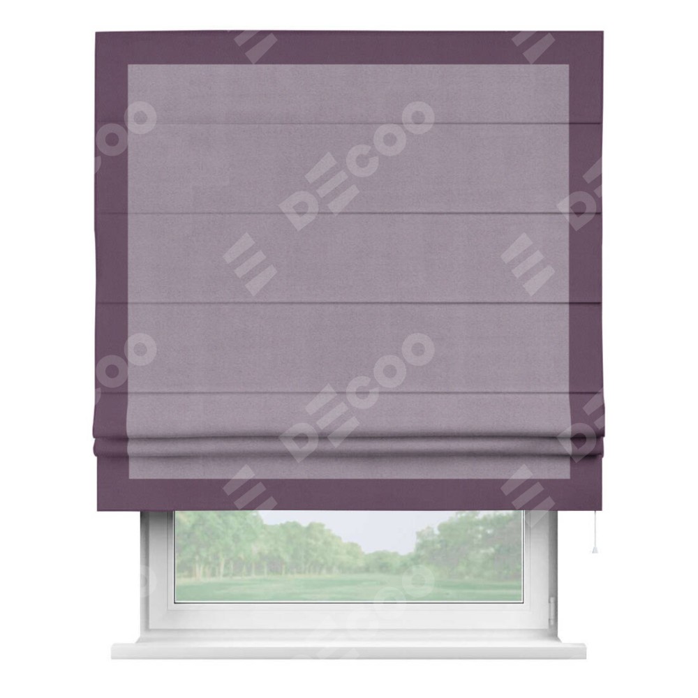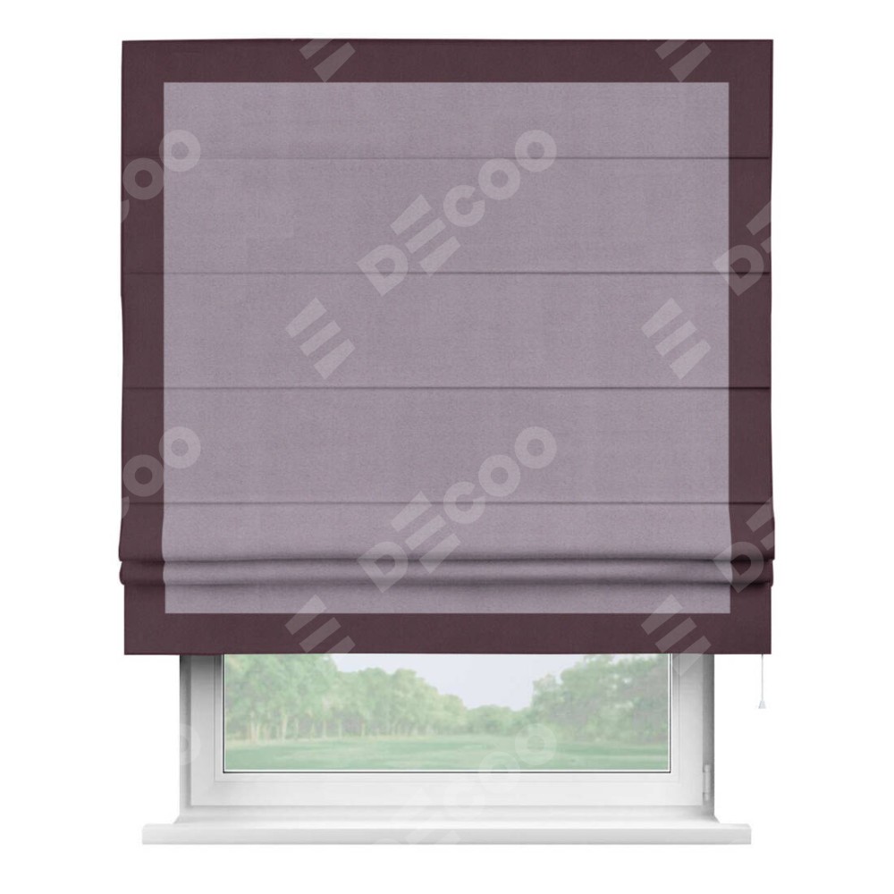 Римская штора «Кортин» для проёма, блэкаут однотонный лиловый с кантом Чесс