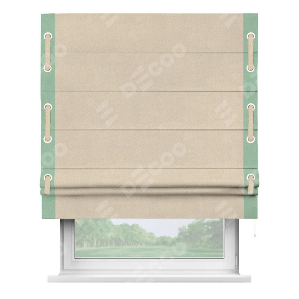 Римская штора «Cortin» для проёма, блэкаут однотонный кофейно-бежевый с кантом Стрим Дуо (люверсы с пояском)