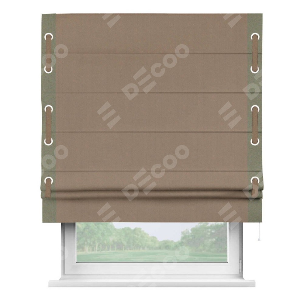 Римская штора «Cortin» для проёма, ткань блэкаут однотонный кофейно-бежевый с кантом Стрим Дуо (люверсы с пояском)