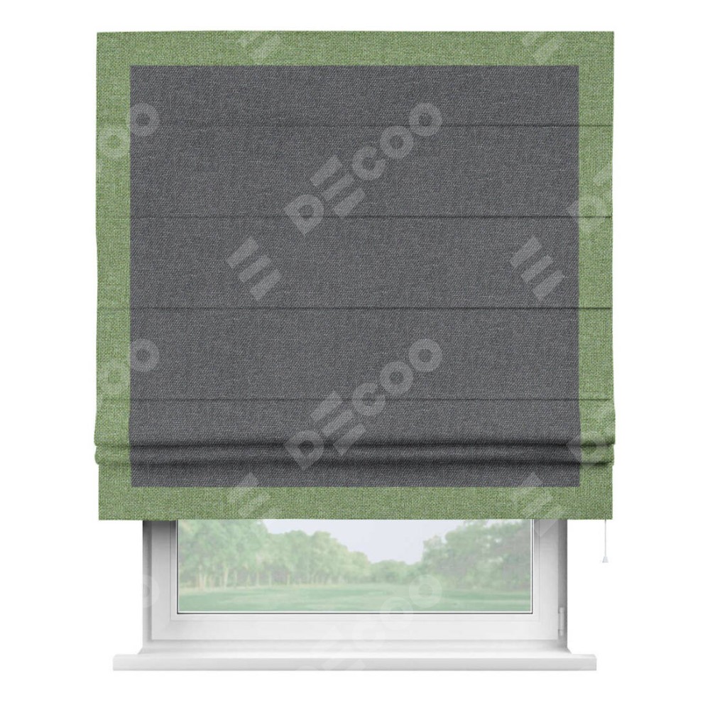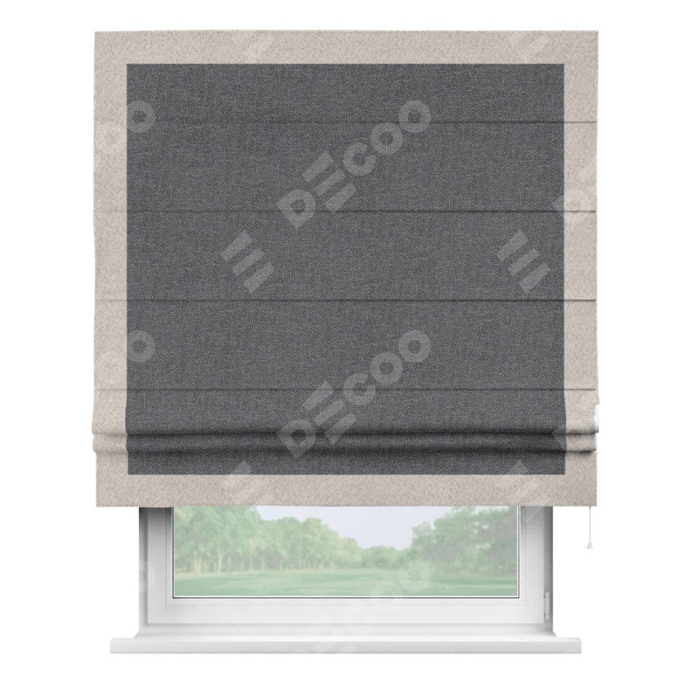 Классическая римская штора производителя «Cortin», пошита из ткани лён димаут графит, артикул: 140644. Имеет универсальный механизм и подходит для монтажа: на потолок, на стену и в нишу.
