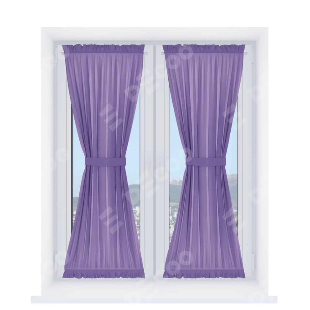 Штора «Песочные часы» производителя «Cortin», используется для створок окон и дверей, пошита из ткани блэкаут однотонный сиреневый, артикул ткани 88305.