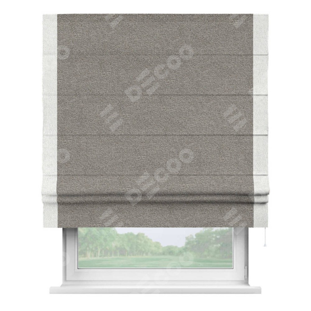 Римская штора «Кортин» для проёма, лён меланж натуральный, с кантом Стрим Дуо