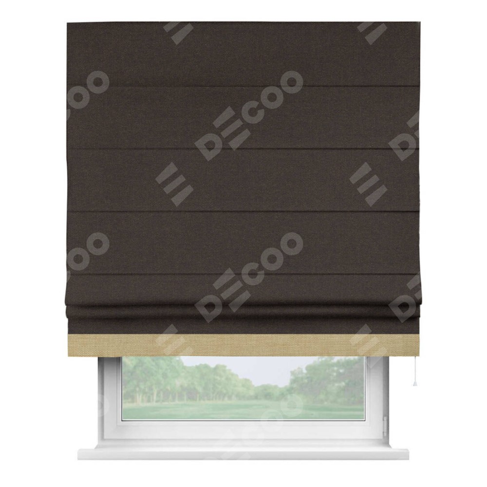 Римская штора «Кортин» для проёма, лён тёмно-коричневый, с кантом Джестер