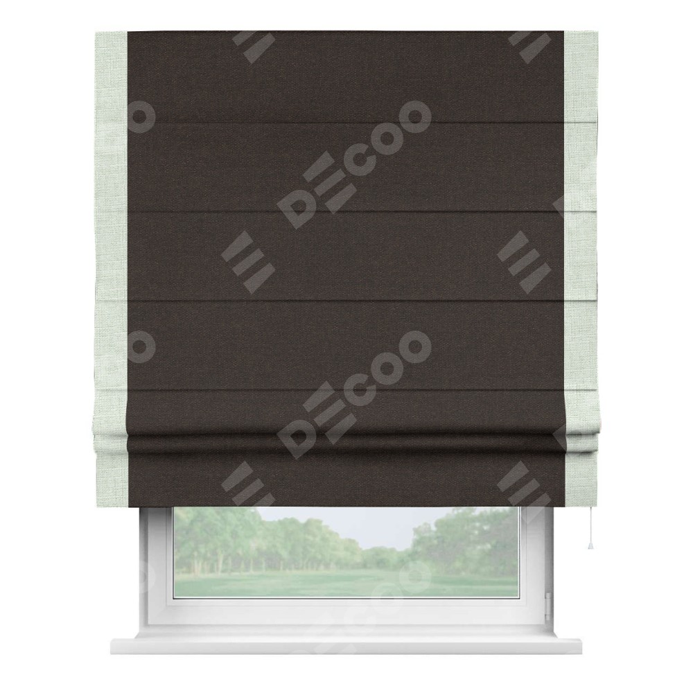 Римская штора «Кортин» для проёма, лён тёмно-коричневый, с кантом Стрим Дуо