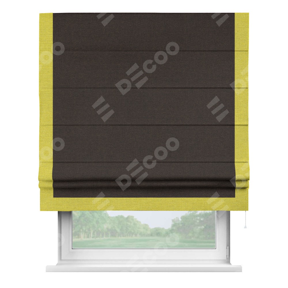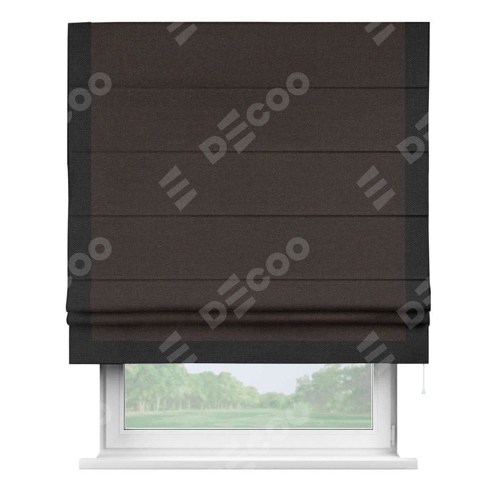 Римская штора «Кортин» для проёма, лён тёмно-коричневый, с кантом Виктория