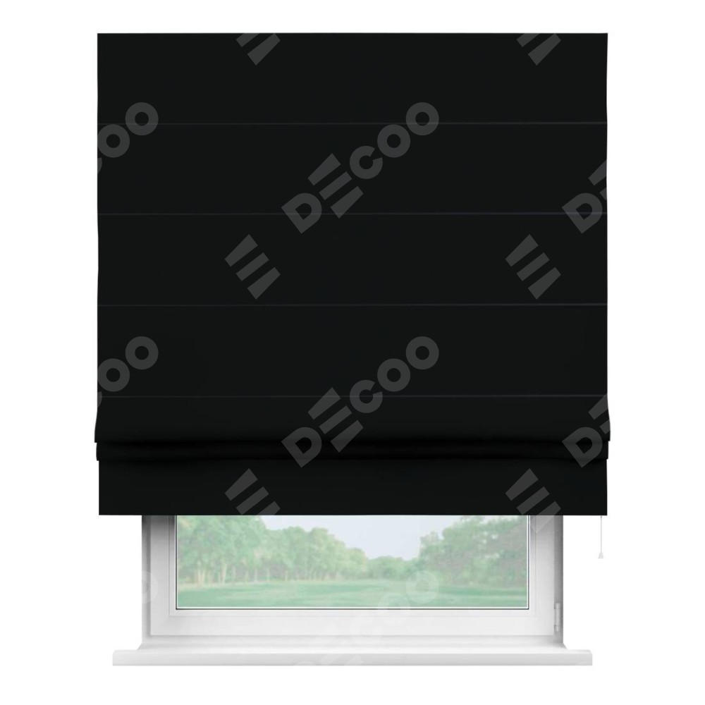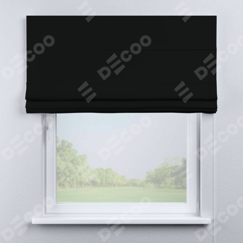Классическая римская штора производителя «Cortin», пошита из ткани однотонный блэкаут черный, артикул: 37. Имеет универсальный механизм и подходит для монтажа: на потолок, на стену и в нишу.