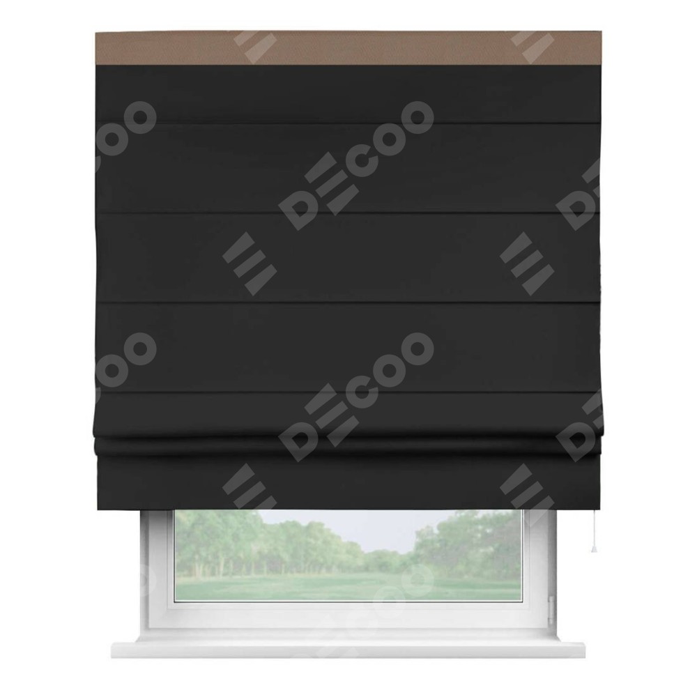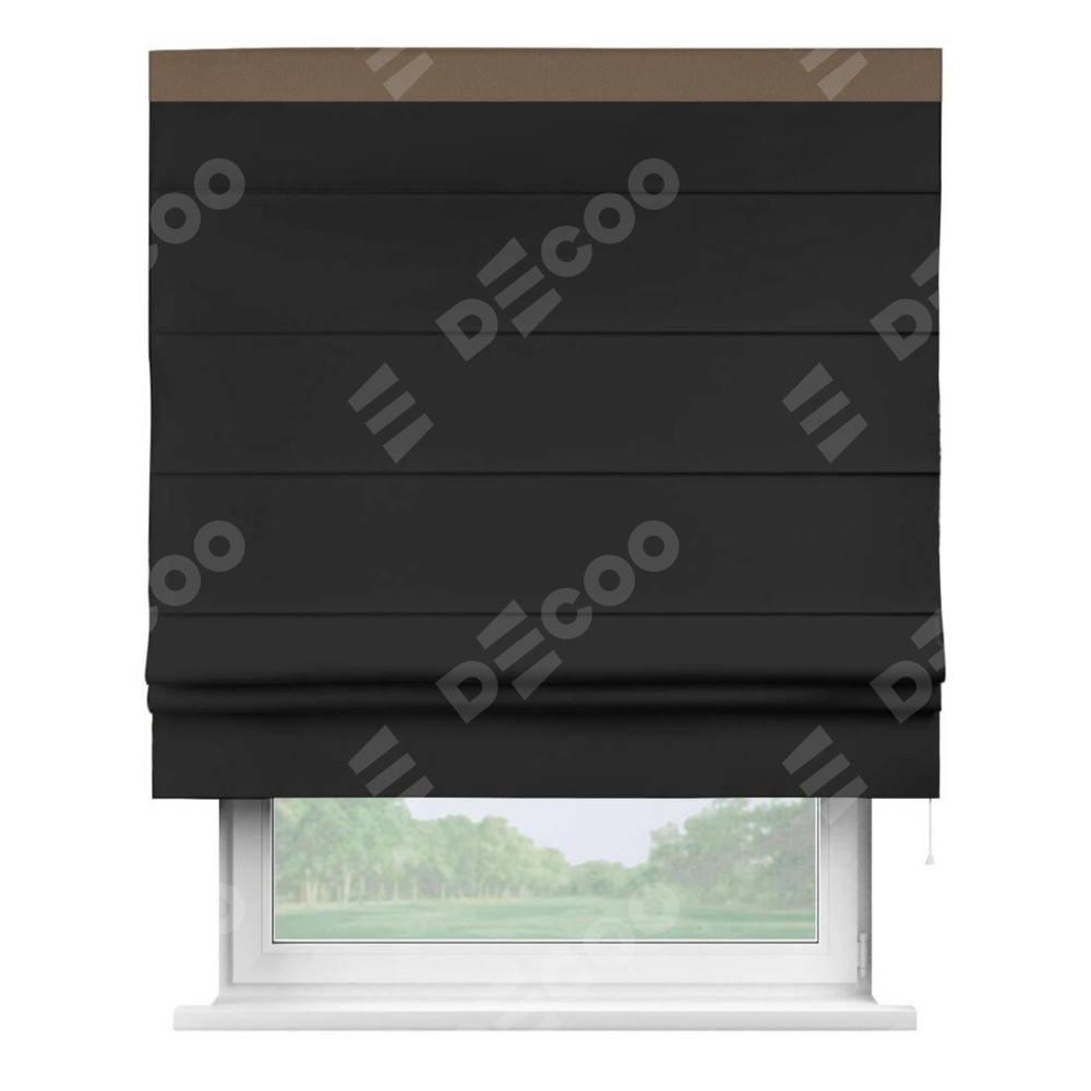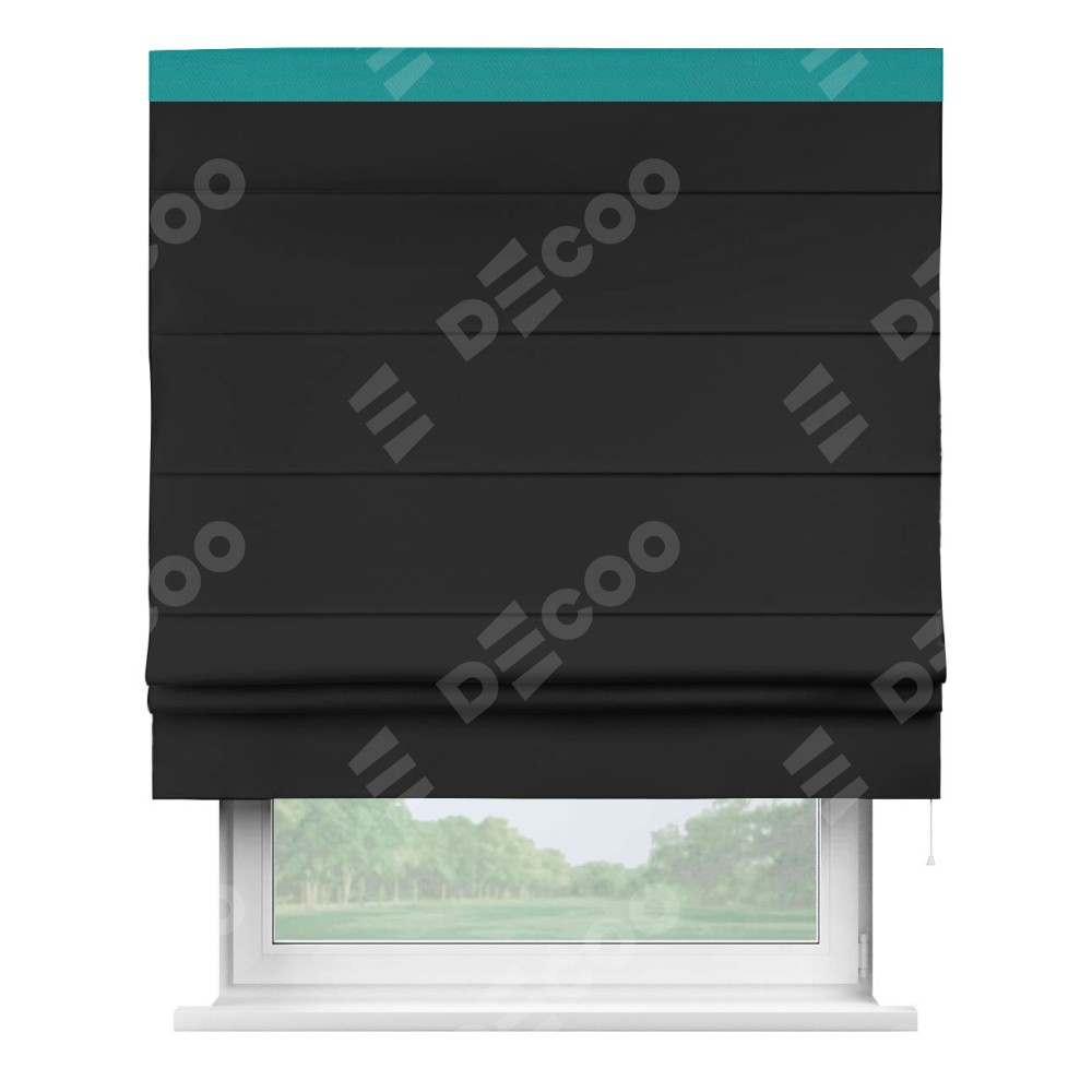 Римская штора «Cortin» для проёма, блэкаут однотонный черный с кантом Кинг
